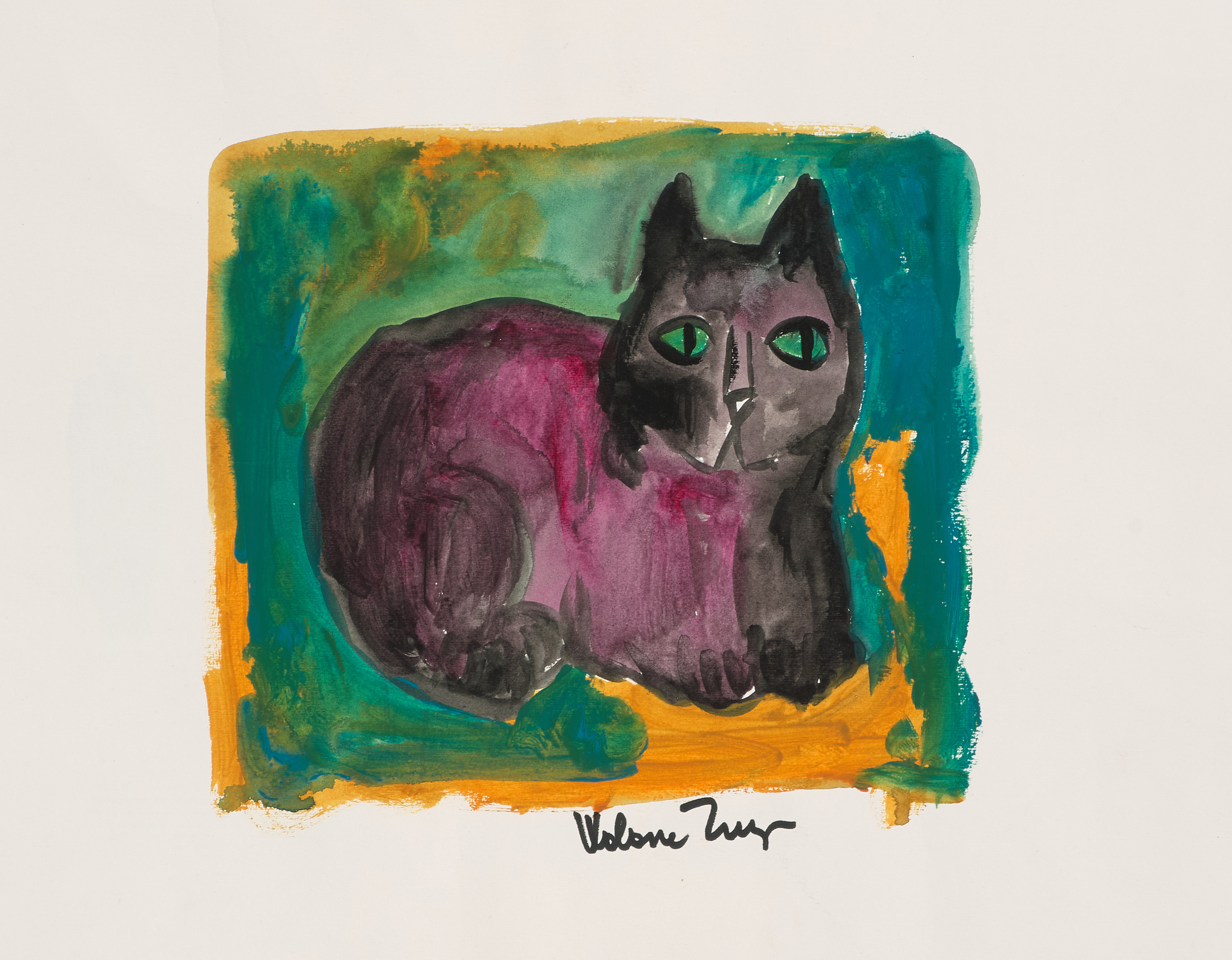 Katze. Gouache auf Papier. Unten mittig in Filzstift signiert. Verso mit Stempel: "Rafica d'arte Lombard" mit diversen Angaben. Blattgrösse 35,3x48,6 cm. -Blatt minimst gebräunt und mit Knitter. Ränder und Ecken bestossen.