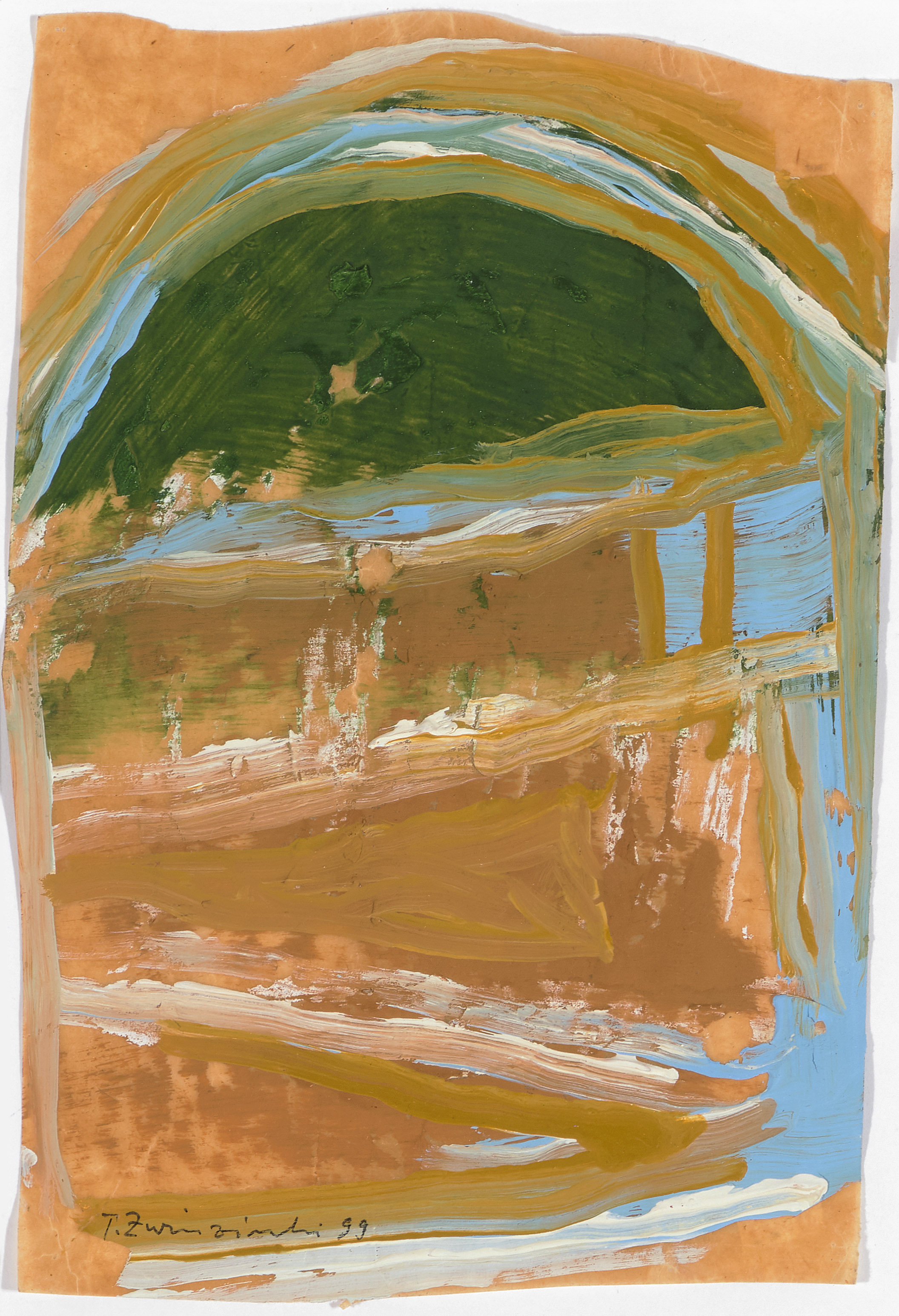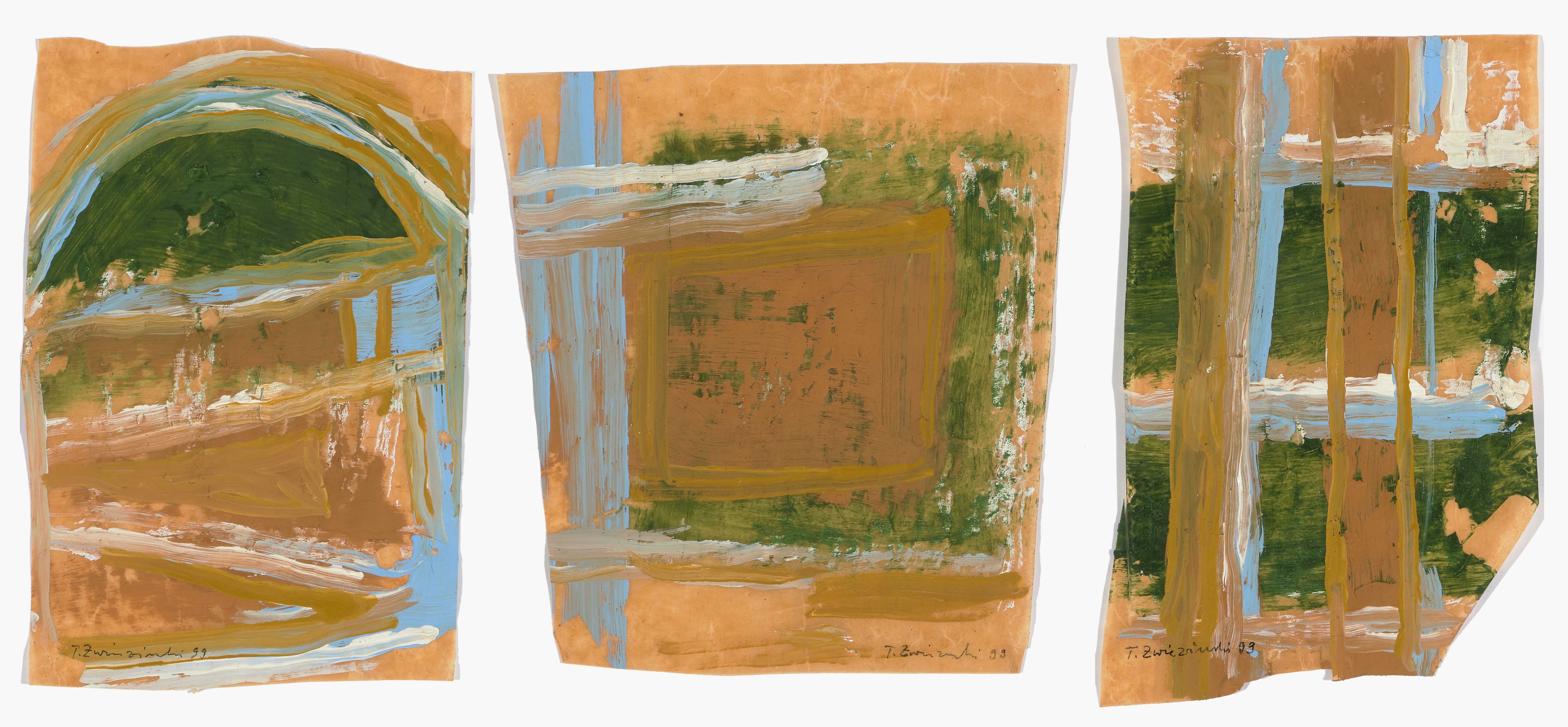 Ohne Titel. 1999. Lot drei Zeichnungen. Mischtechnik auf braunem Papier. Alle unten rechts bzw. links signiert und datiert. Masse zwischen 20,5-19x18-14 cm. Alle einzeln gerahmt. -Diese Werke wurden nicht ausgerahmt.