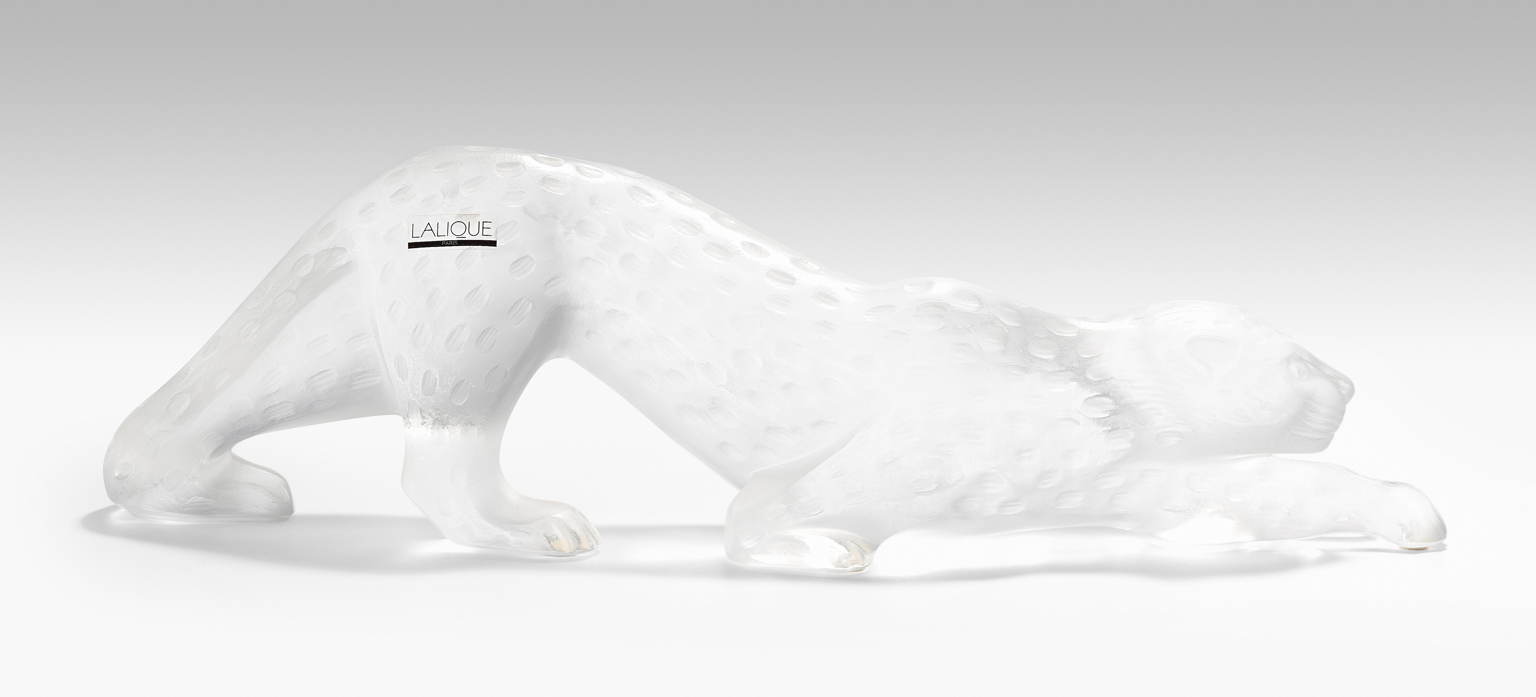 Entwurf von Marie-Claude Lalique, um 1990. Ritzsignatur: "Lalique (R im Kreis) France". Farbloses Glas, geschliffen und satiniert. L 36,5 cm.