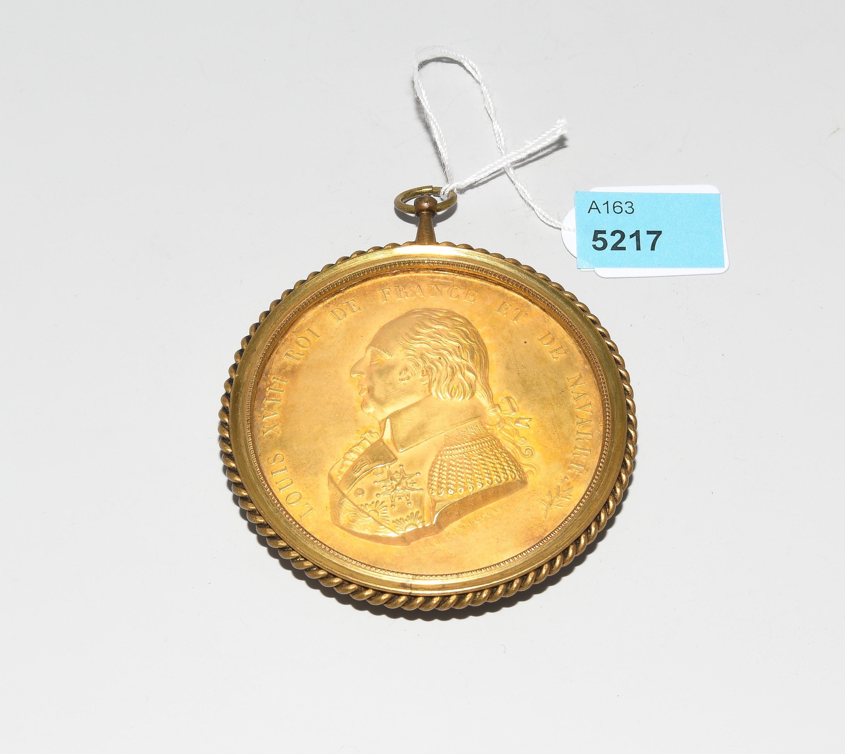Bronze, gefasst mit Profilansicht Louis XVIII, Inschrift: "LOUIS XVIII ROI DE FRANCE ET DE NAVARRE". D 6,7 cm.
