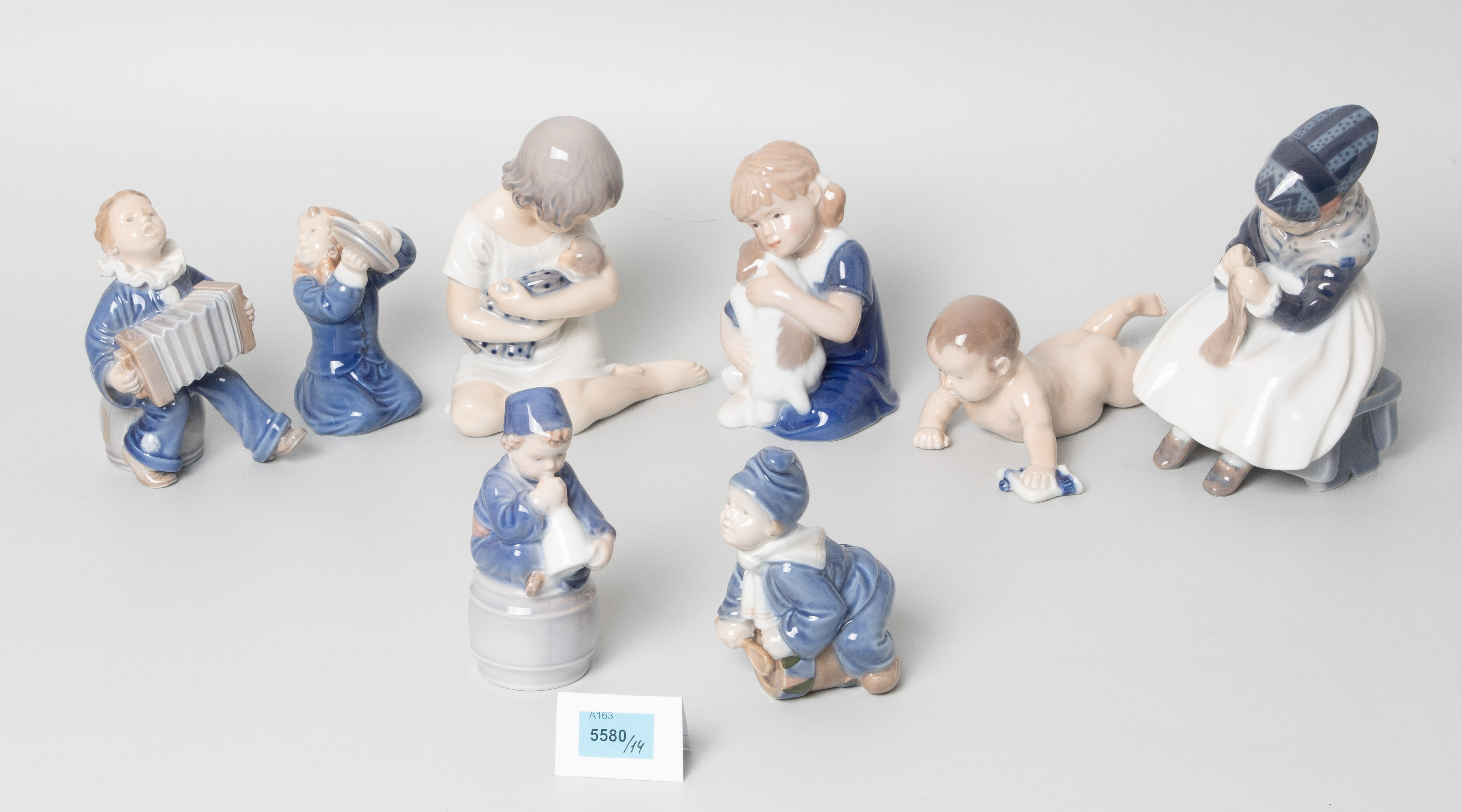 20.Jh. Porzellan, pastellfarbene Unterglasurbemalung. Diverse Kinderdarstellungen. H 9–21 cm.