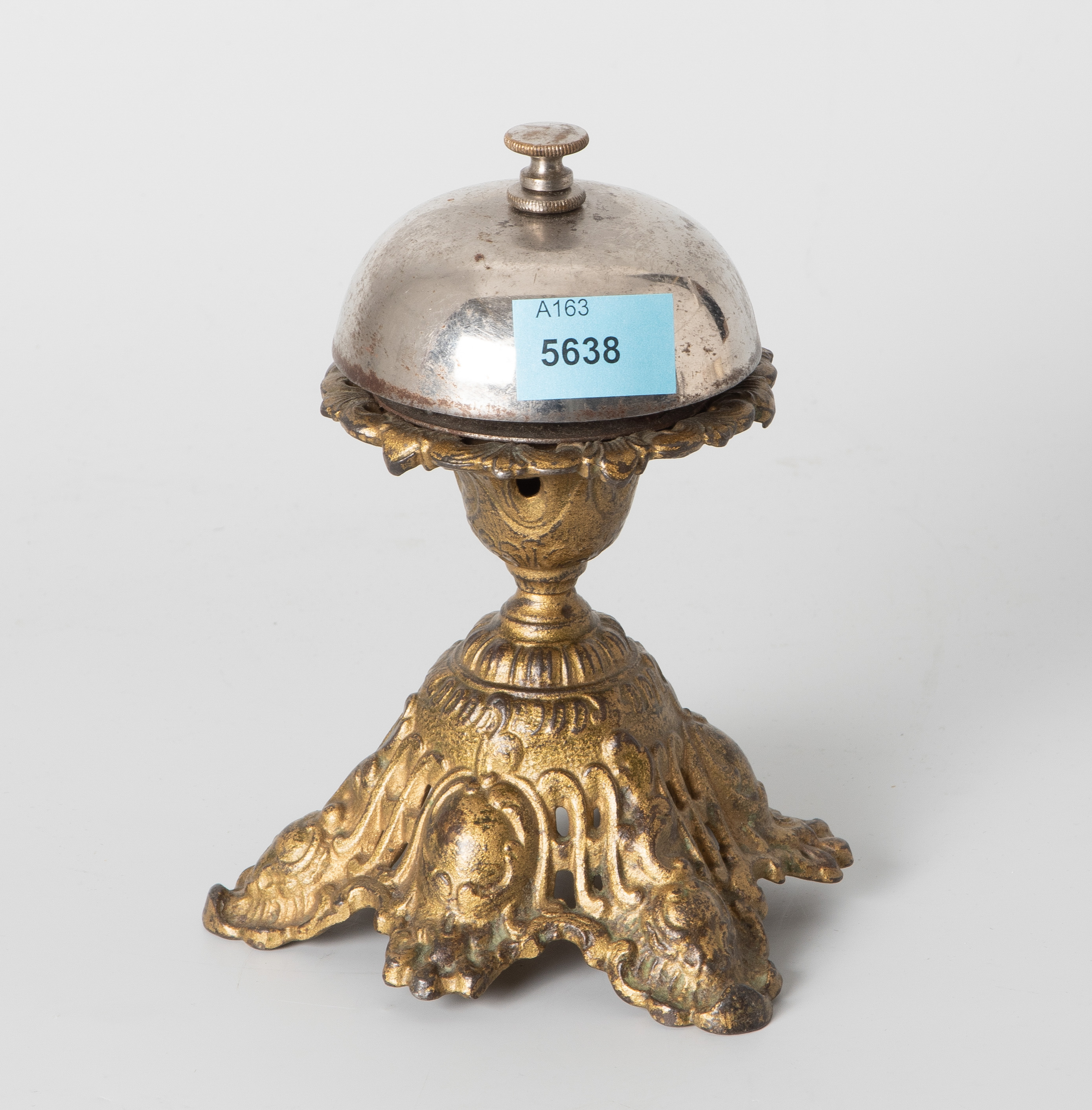 Bronze, Metall. 19./20.Jh. Bronze. Zilisierter Schaft auf drei Füssen stehend mit oben angebrachte Glocke. H 13 cm.