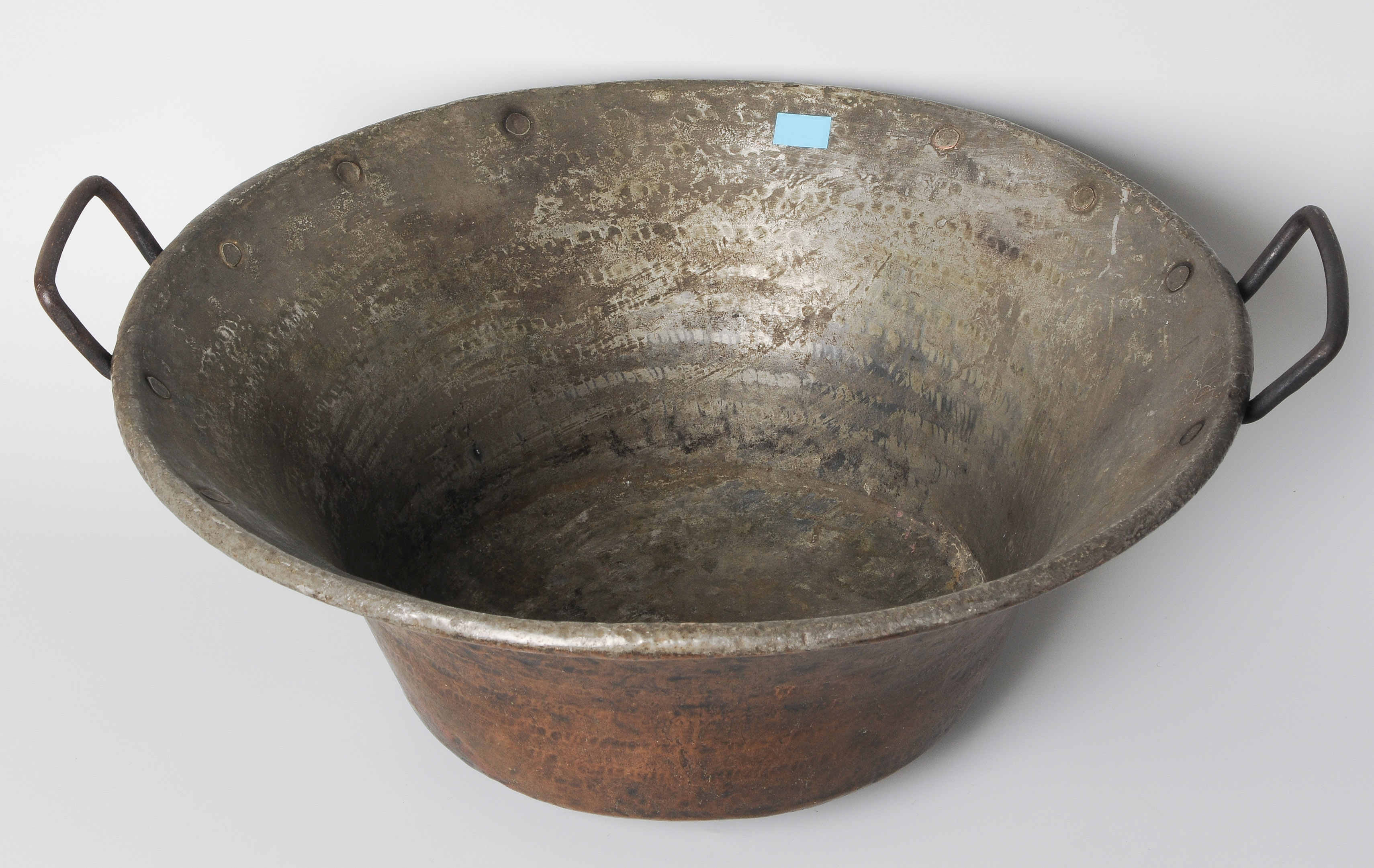 Graubünden, 19.Jh. Kupfer, innen verzinnt. Eisenhenkel. Für die Zubereitung von Polenta. H 22,5 cm.
