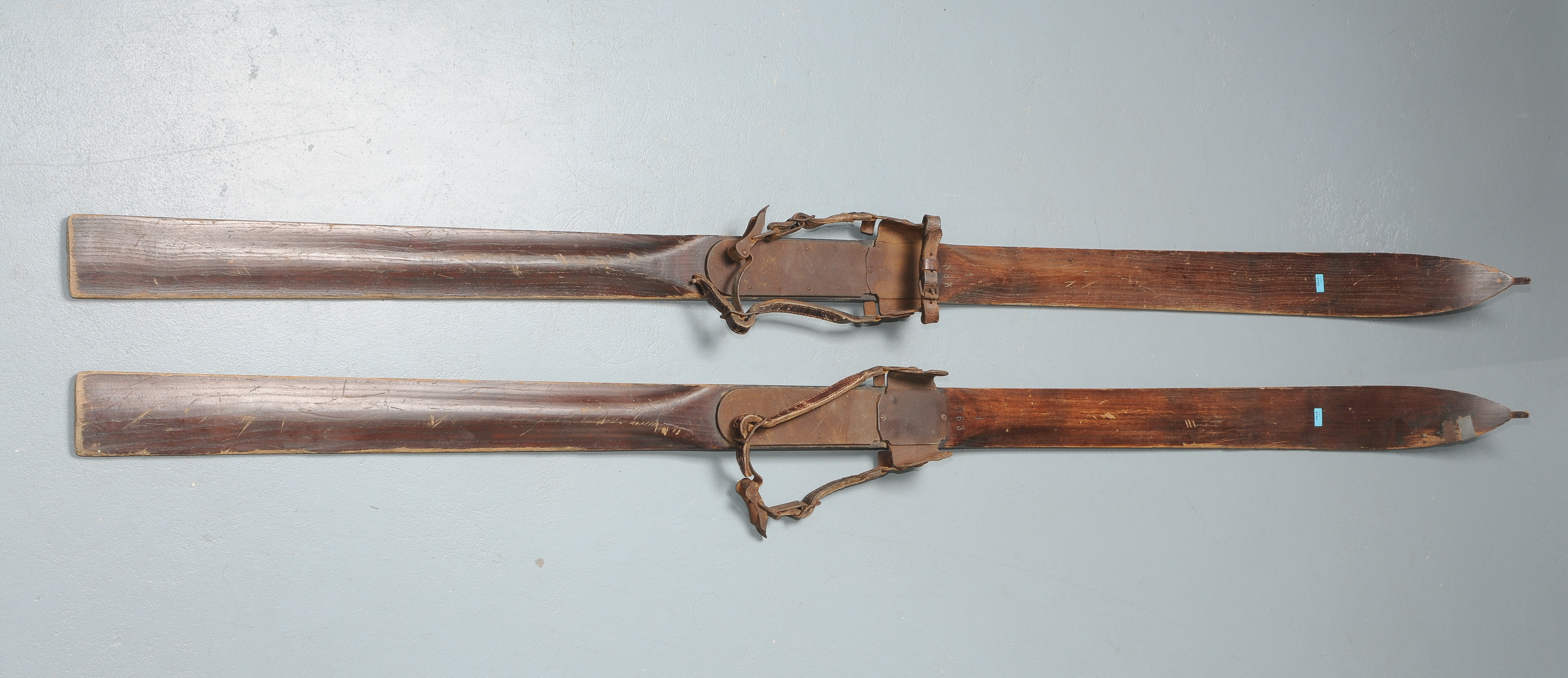 Alpenländisch, Anfang 20.Jh. Holz, Eisen und Leder. Eingeprägte Zahlen: "1 383". Einfache Bindung. L 205 cm.
