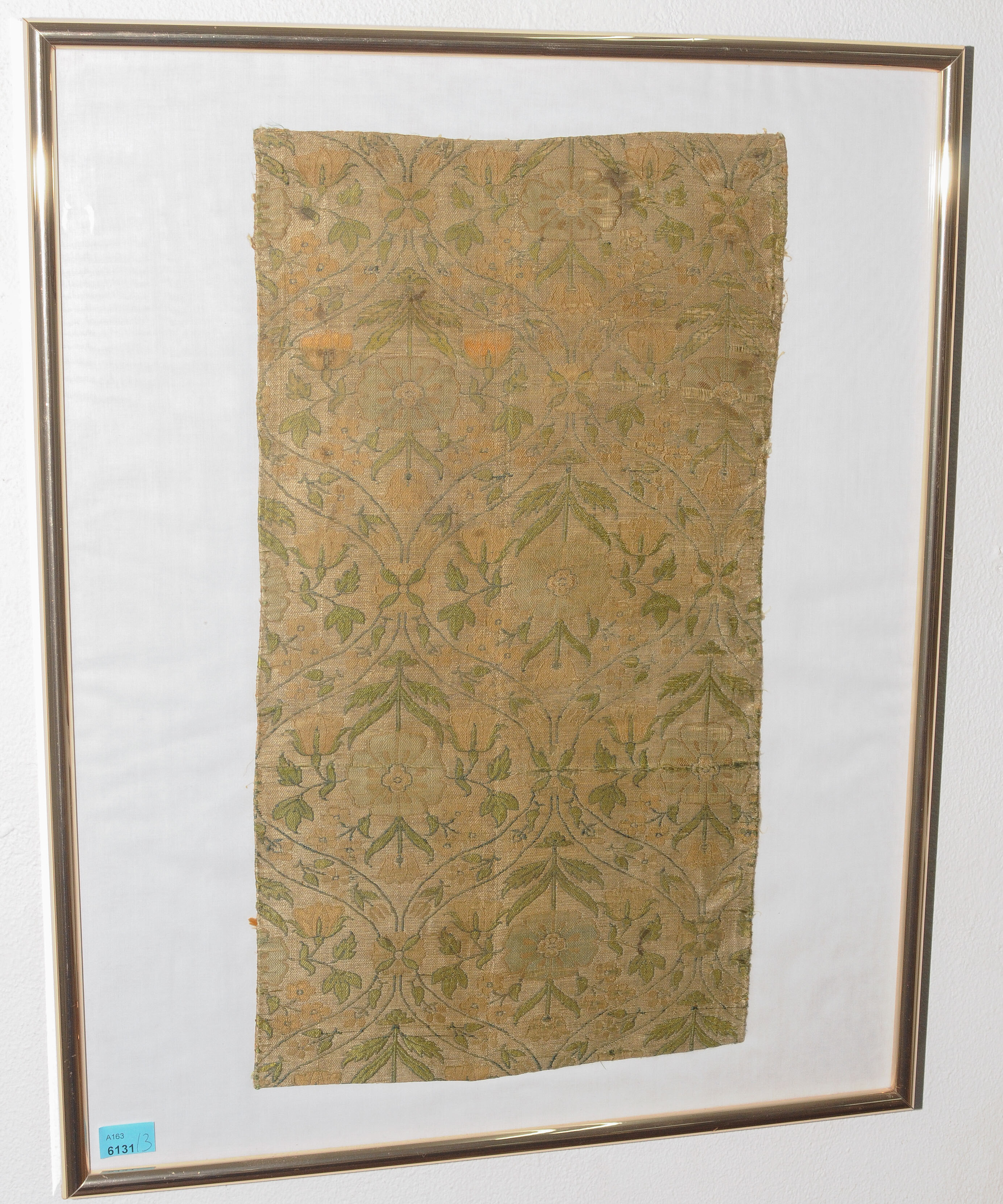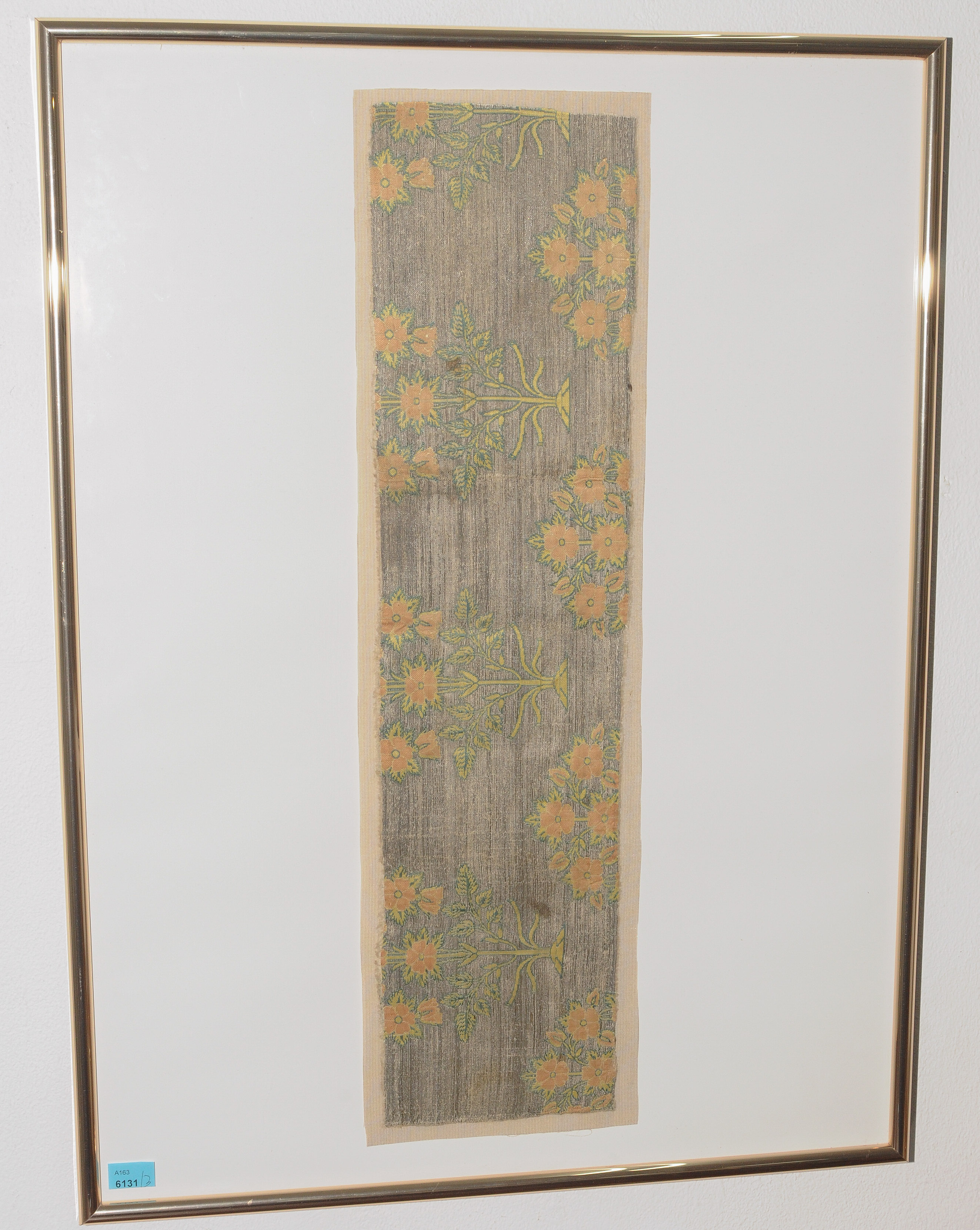 Wohl 18.Jh. Seide und Baumwolle. Florale Muster. 34x16, gerahmt 51x41 cm; 43,5x22,5, gerahmt 51x41 cm; 55x13,5, gerahmt 63x47 cm. - Altersspuren.
