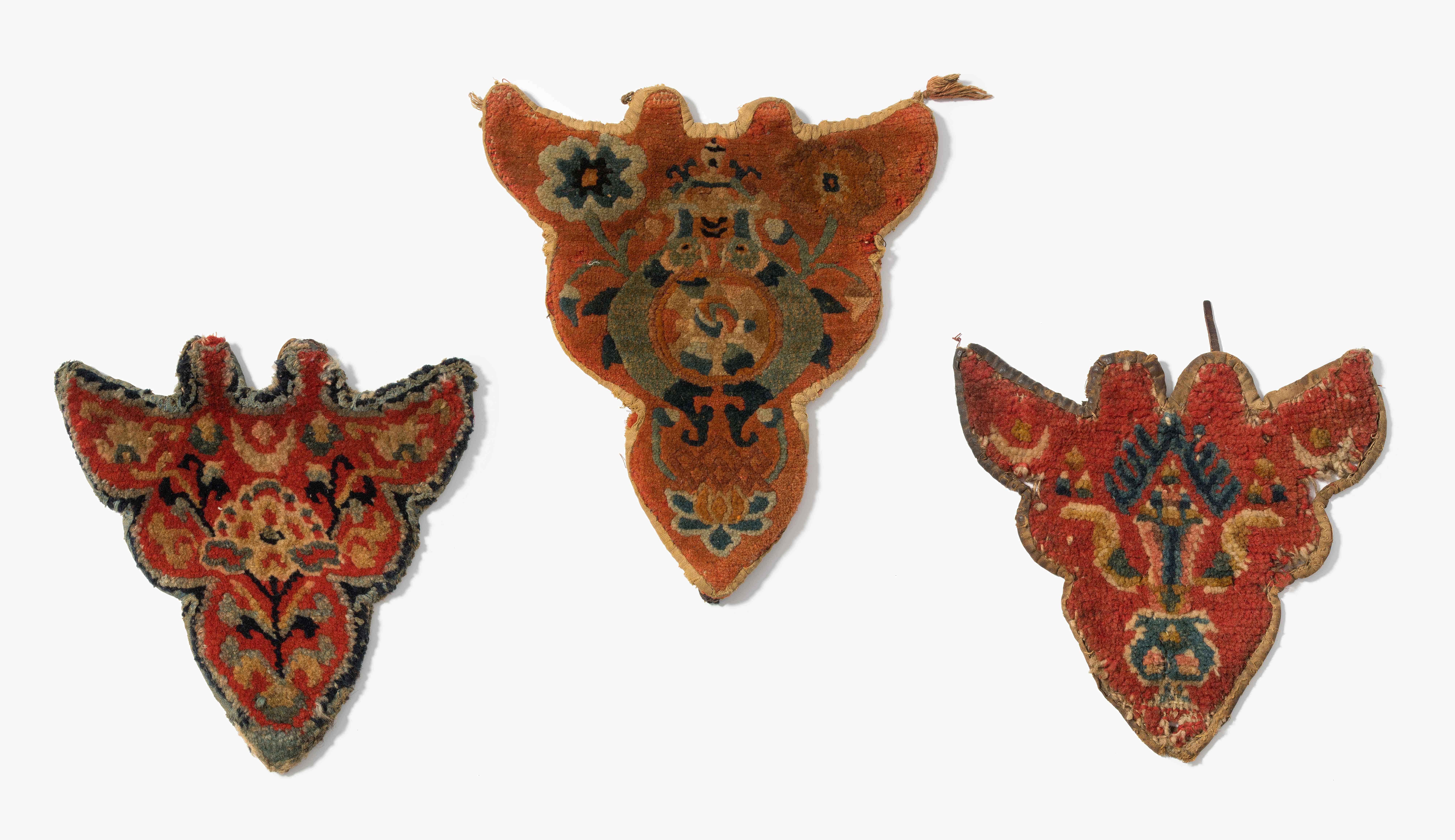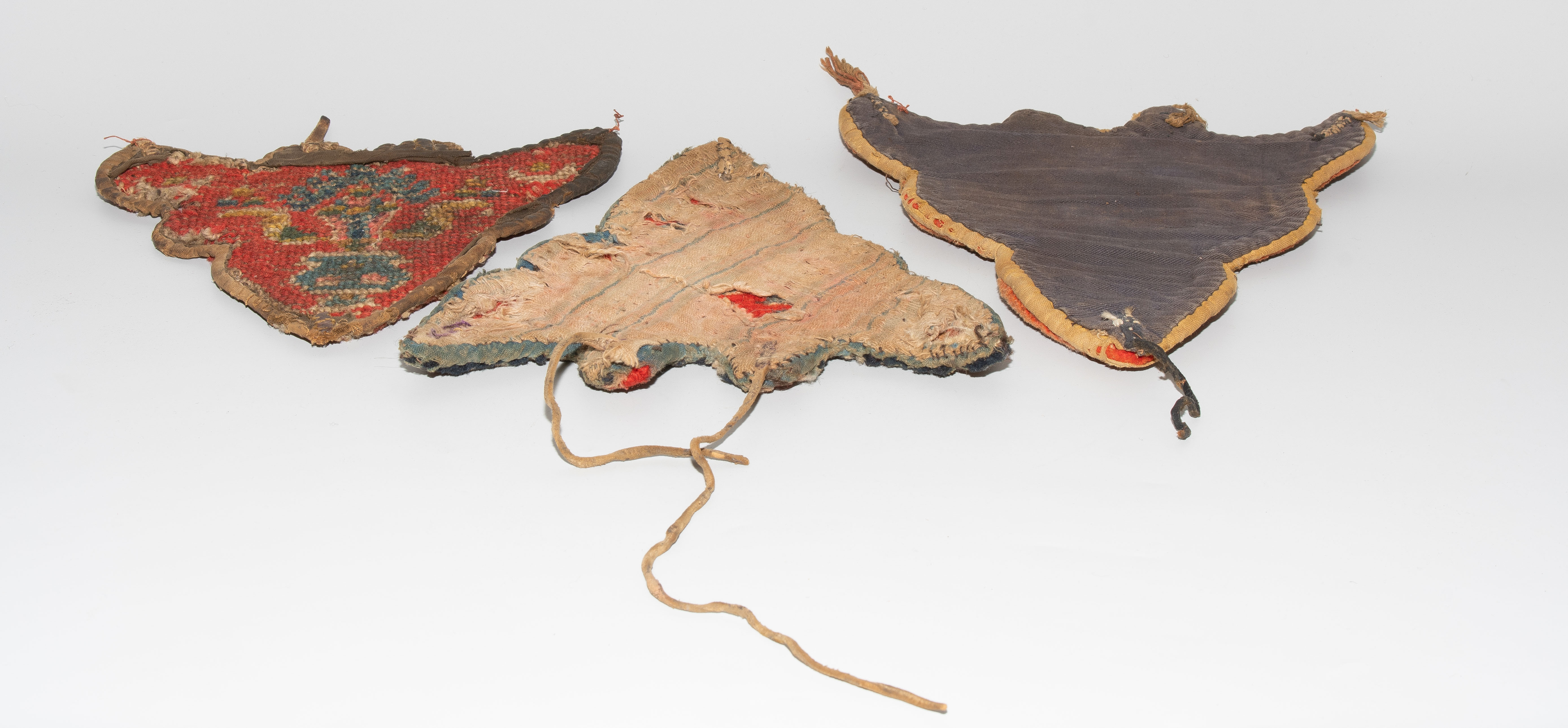 Tibet, ca. 1920. Wolle. Geschweifte Dreiecksform. L 27 cm. - Alters- und Gebrauchspuren.
