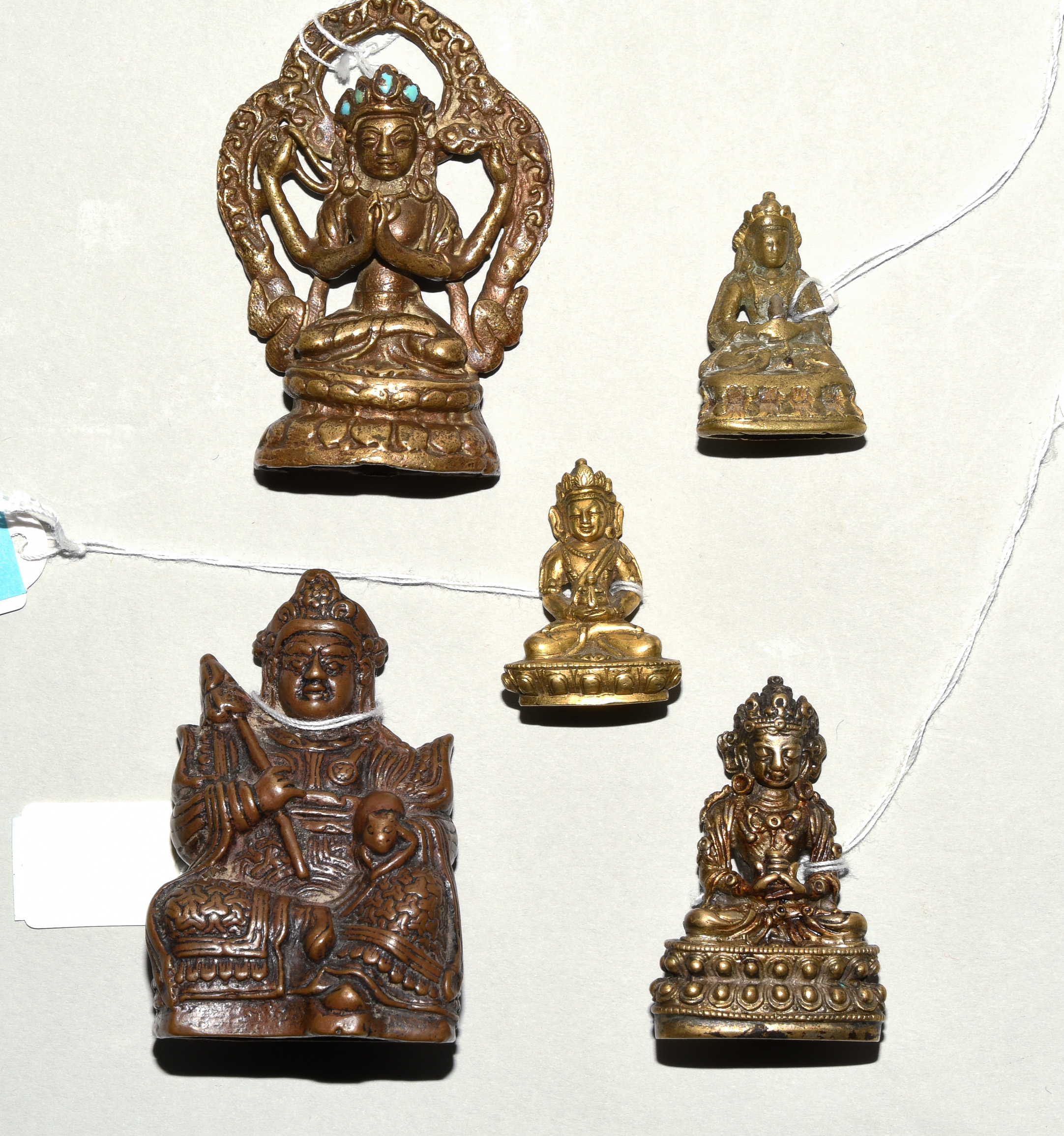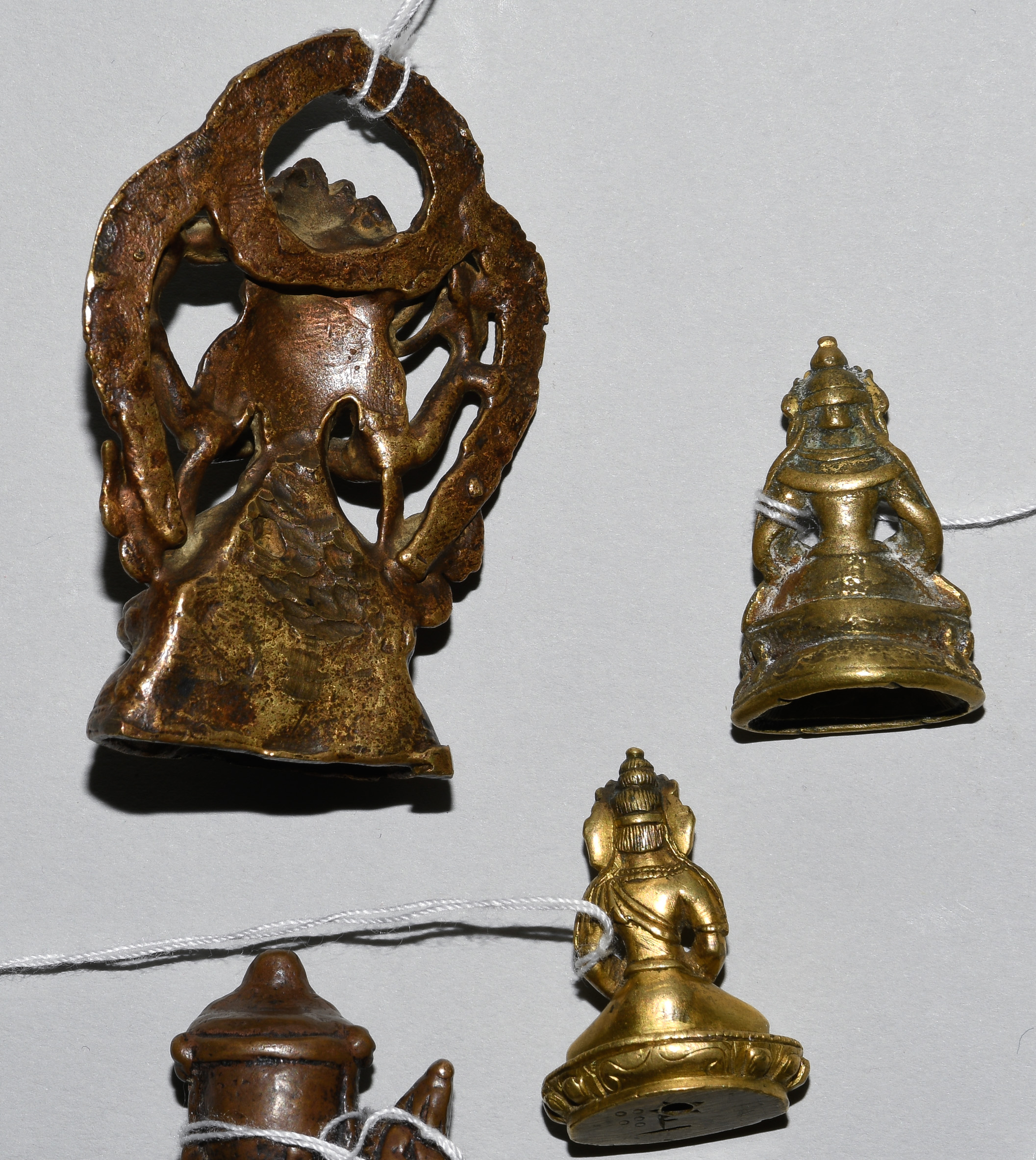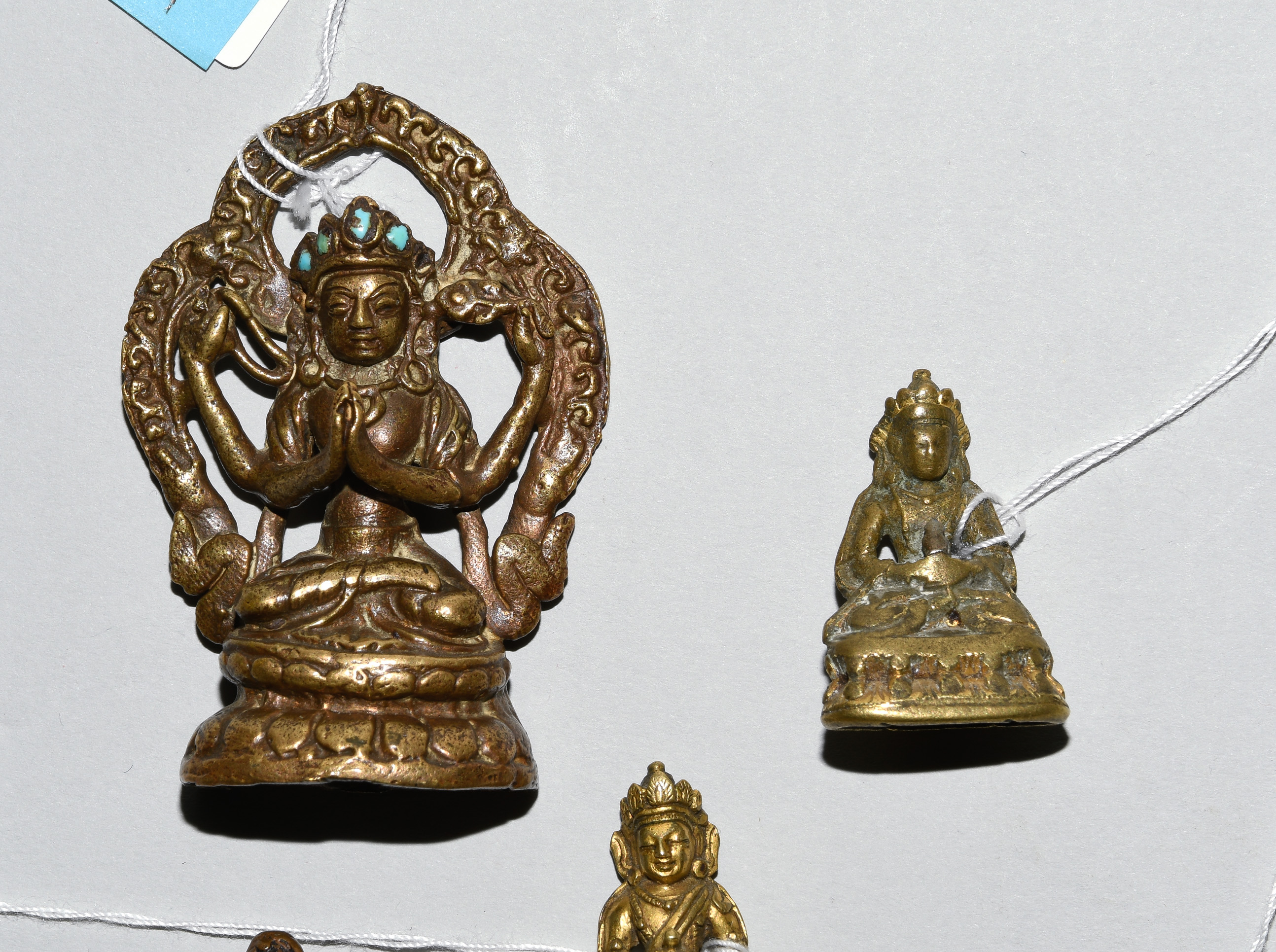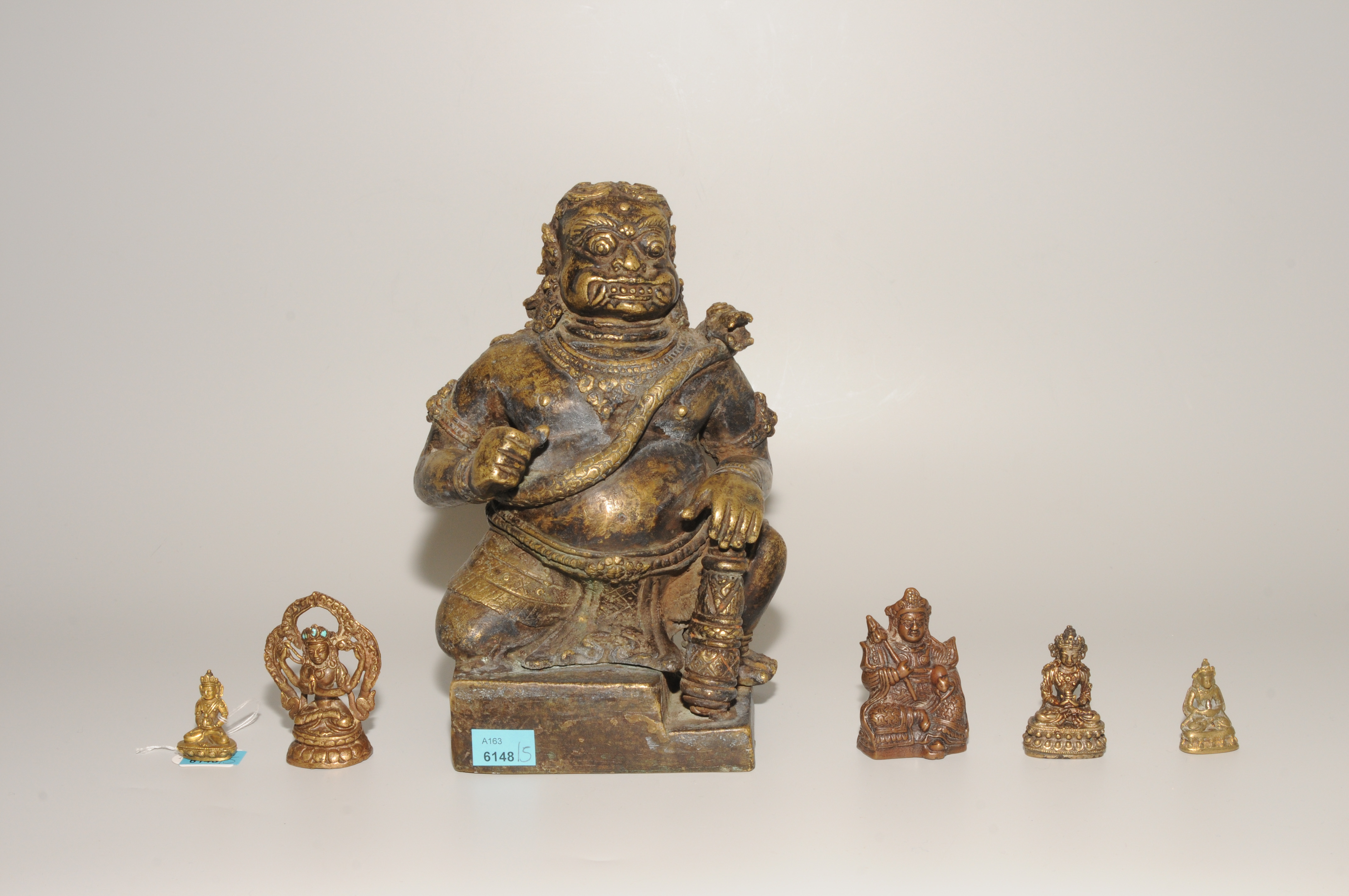 Tibet/Nepal/China, 20.Jh. Metall. Diverse Bodhisattvas sowie ein Rakshasa. H 3,5-23 cm.