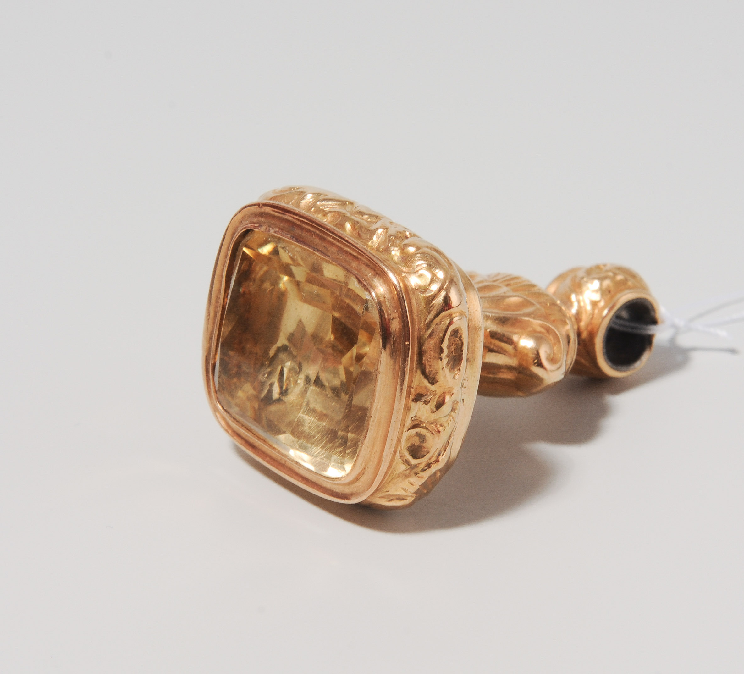 19.Jh. 750 Gelbgold. Basis mit foliertem Quarz. 4x2,5 cm, 12,3 g.