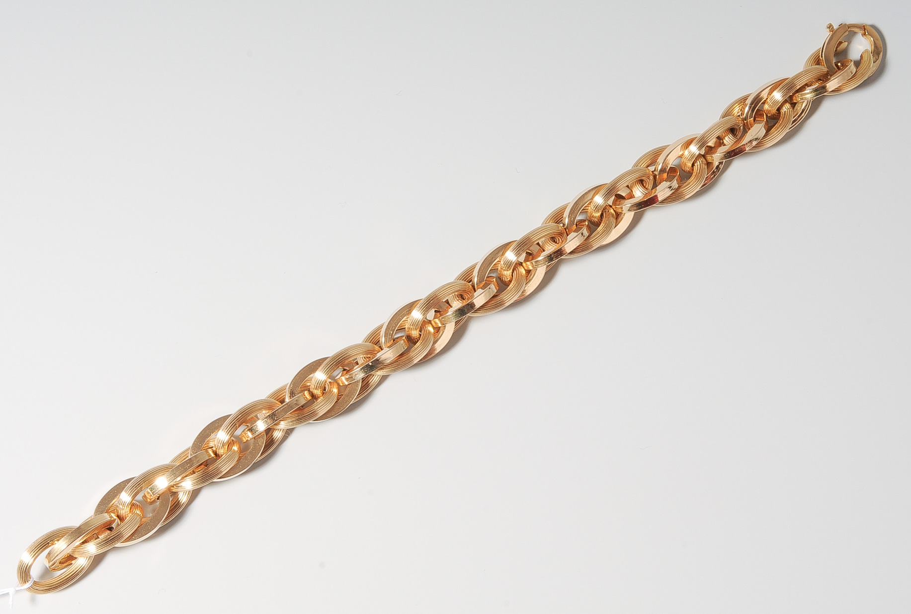 750 Gelbgold. Ovale Glieder tlw. mattiert/poliert und hohl verarbeitet. L 22 cm, B 1,3 cm, 28,8 g.