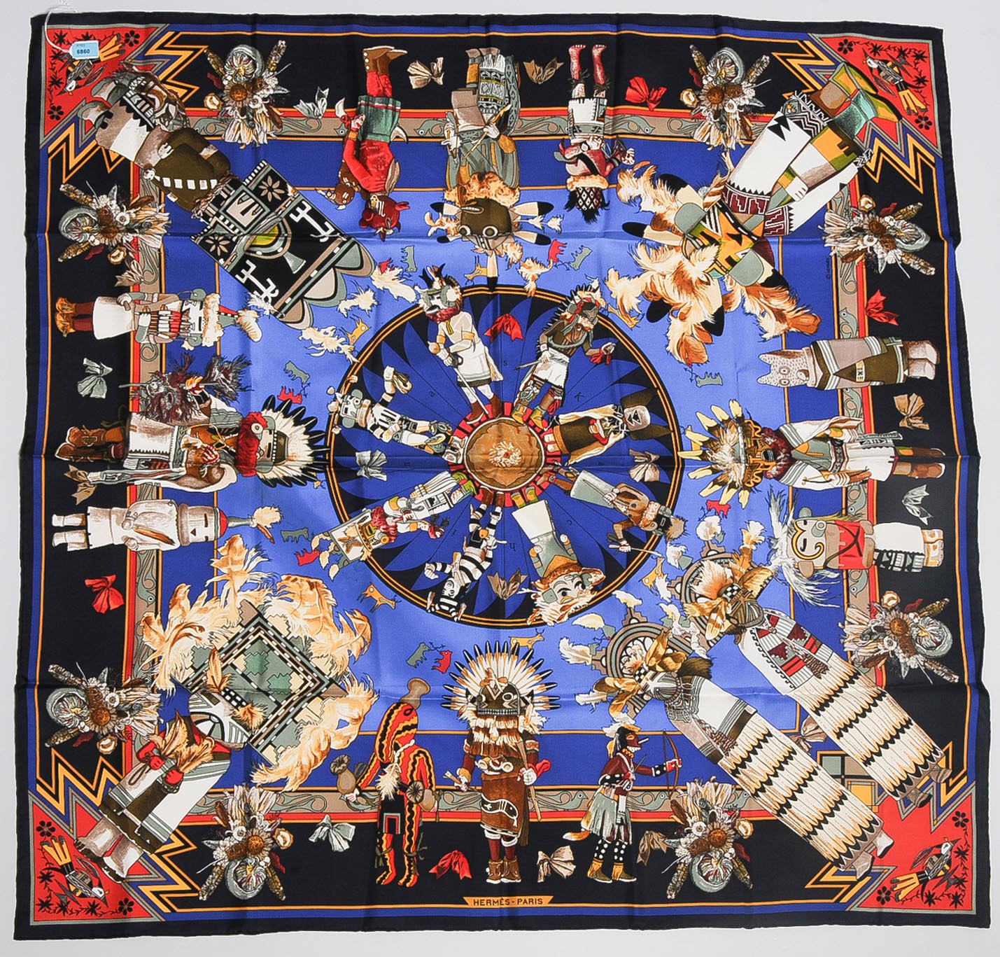 Seide in Blau. Umrandung in Dunkelblau. 86x86 cm.