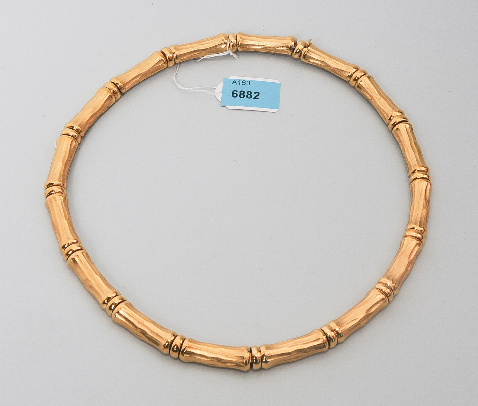 Aus goldfarbenem Metall. Halbrunde Glieder in Bambusoptik. L ca. 47 cm.