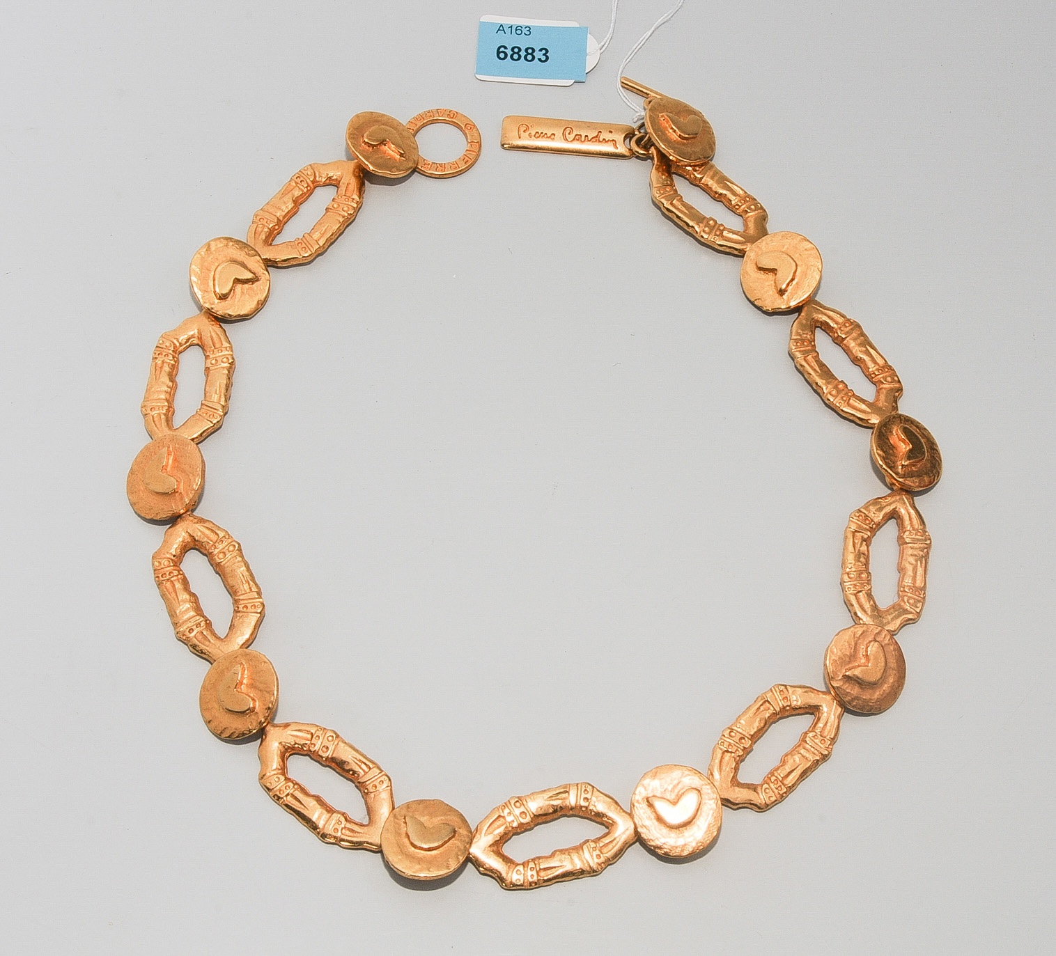 Aus goldfarbenem Metall. Dekor mit Herzen und mit ornamentalen runden Gliedern. L ca. 47 cm.