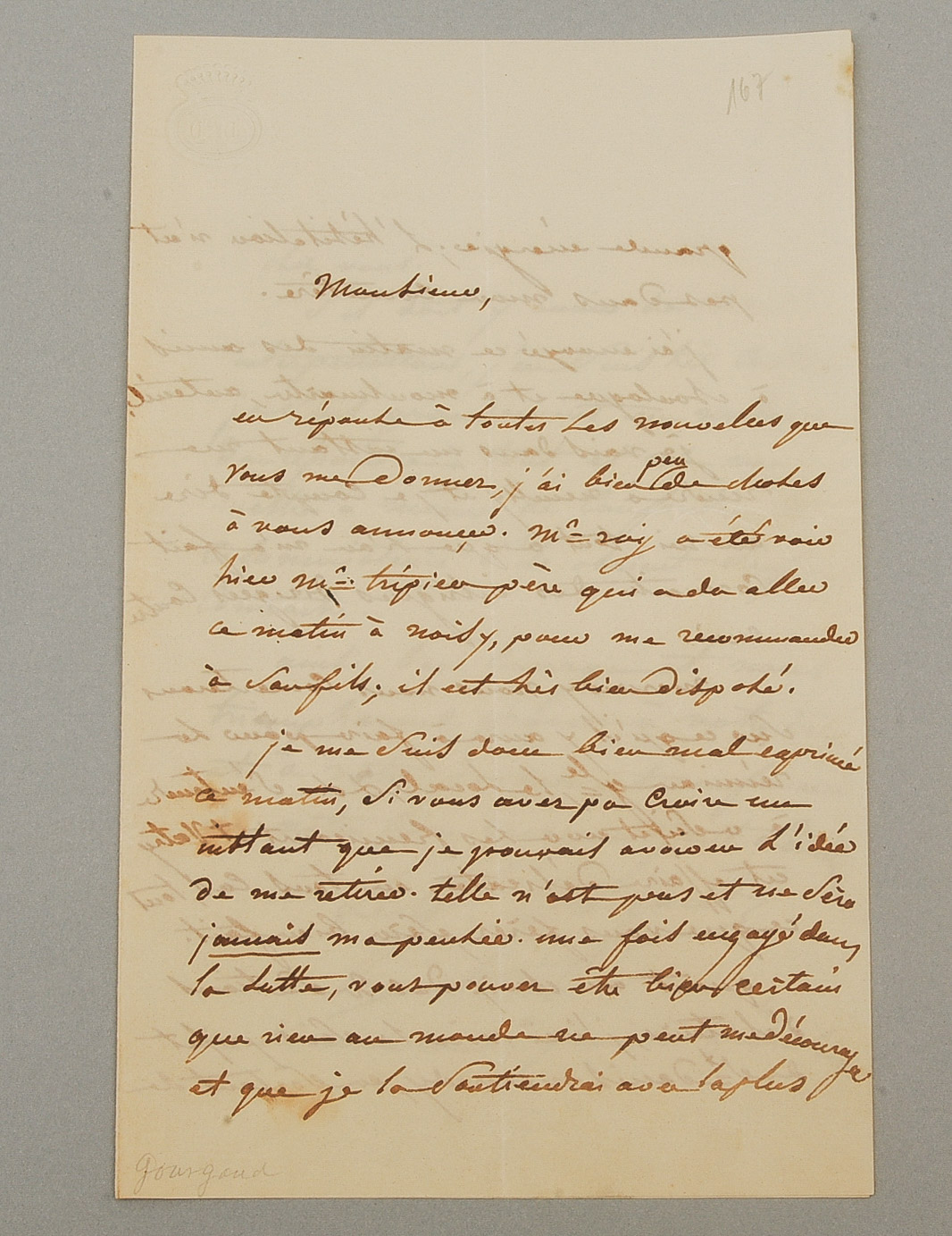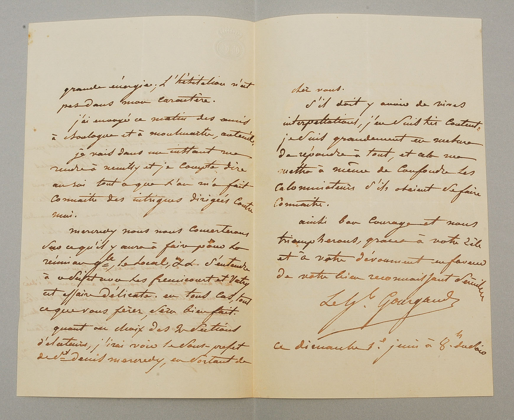Französischer Brigadegeneral. Eigenhändiger Brief mit Unterschrift, dat. 1. Juni. 3 S. 8°.