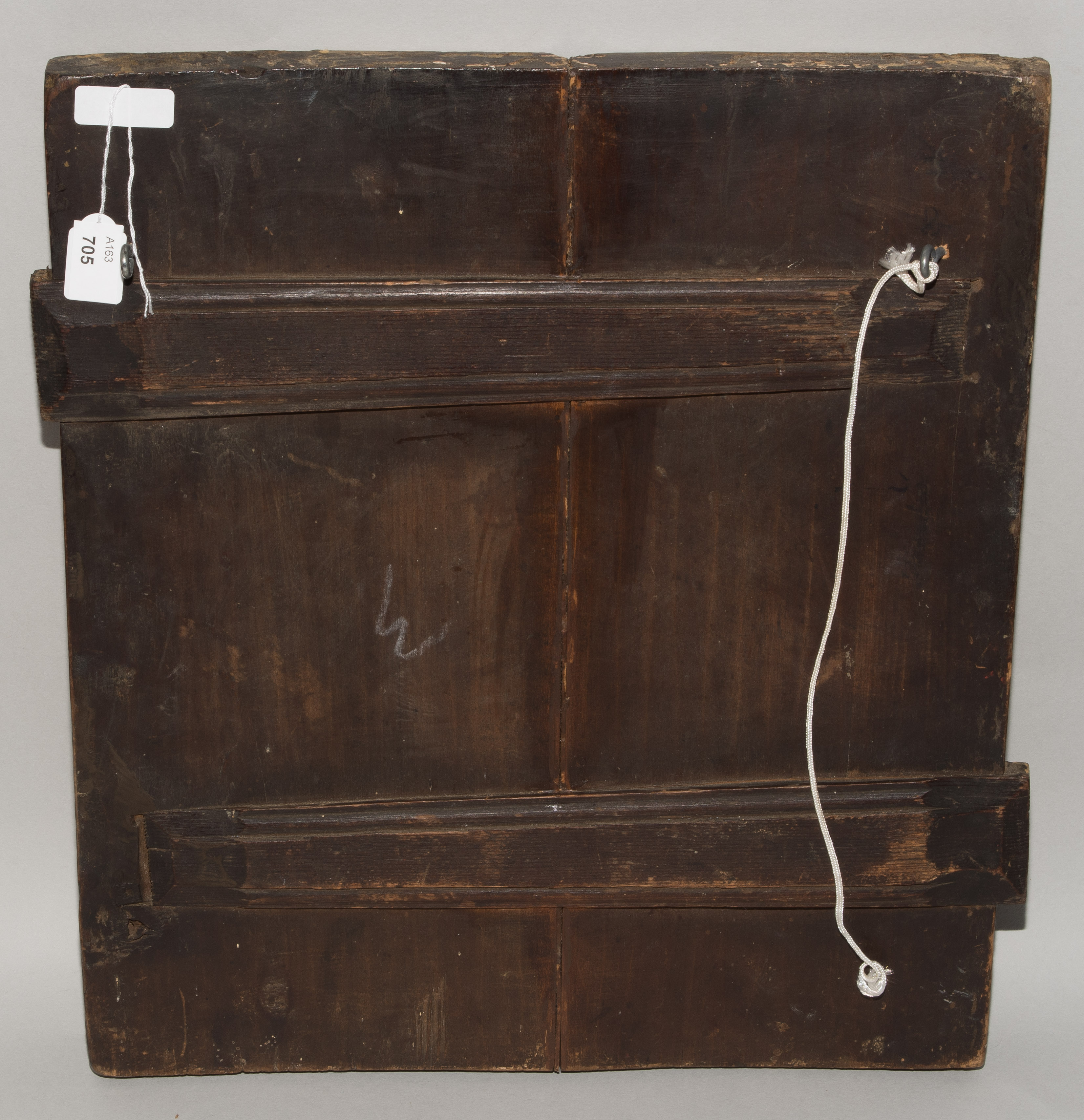 - Restaurierter Längsriss. Levkas der Umrandung freigelegt. Kleine Fehlstellen und Retouchen.