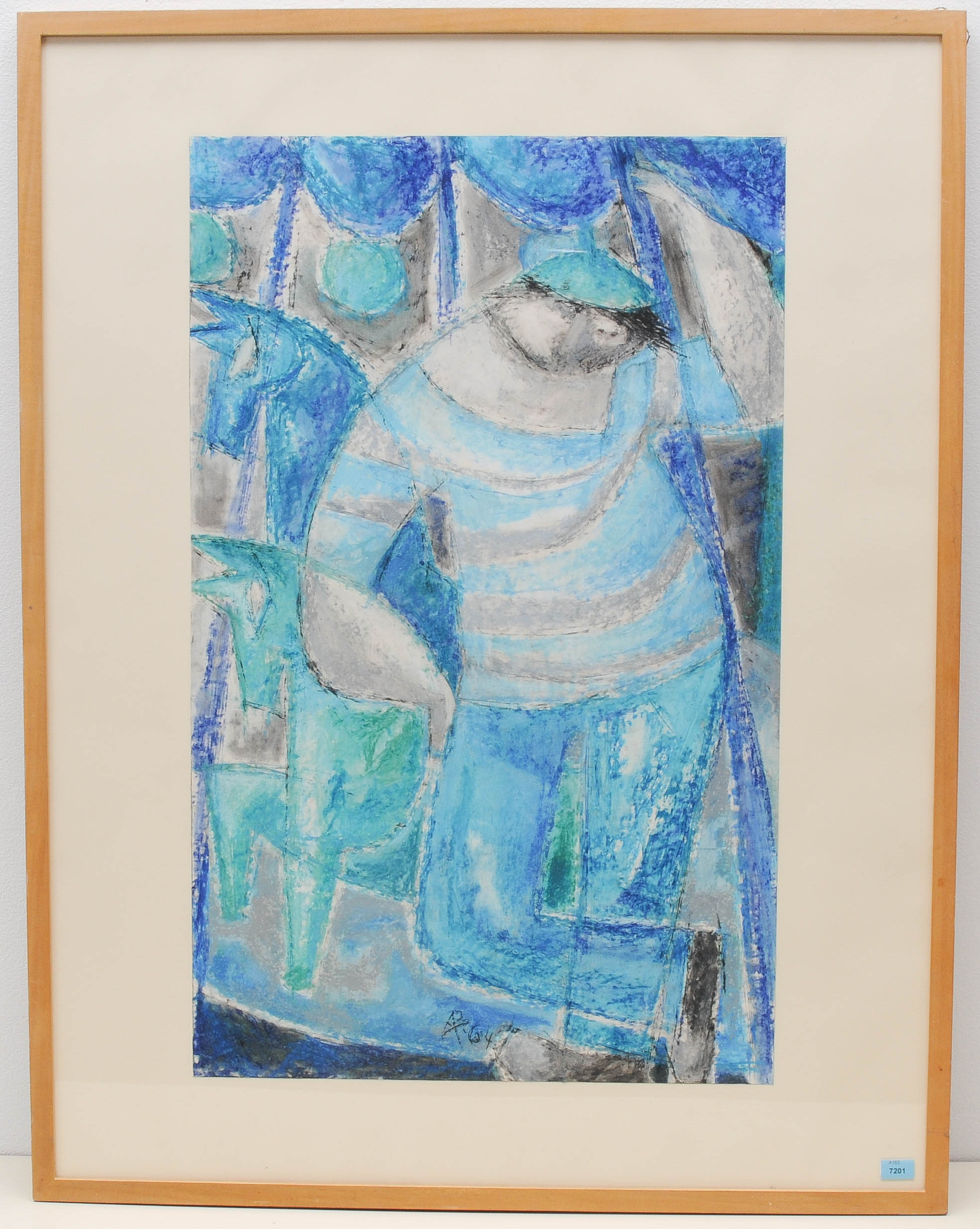 Clown. 1964. Ölkreide auf Papier. Unten mittig unleserlich monogrammiert und datiert. Blattgrösse 69,5x43,3 cm. Gerahmt.