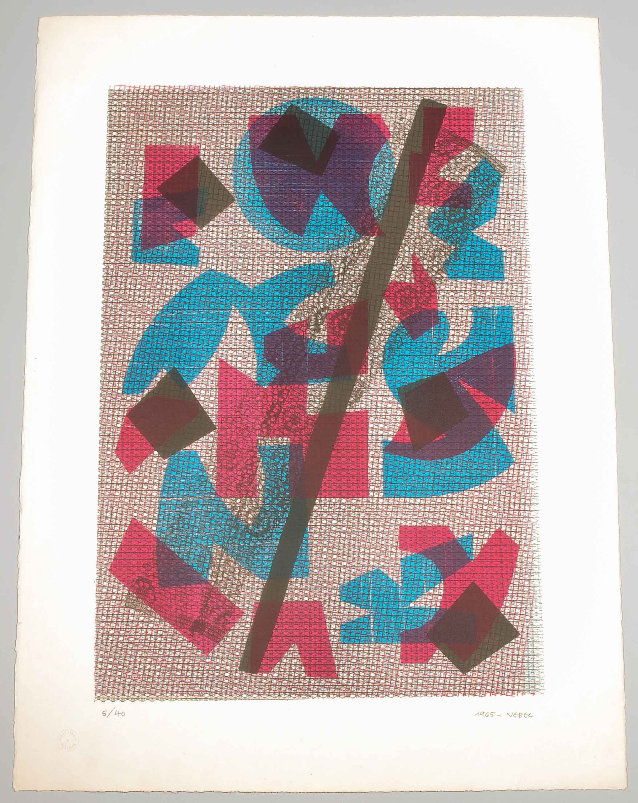 Ohne Titel. 1965. Farblithographie. 6/40. Unten rechts datiert und signiert. Unten links mit Prägestempel: "Erker Presse St. Gallen". Blattgrösse 76,5x56,3 cm.