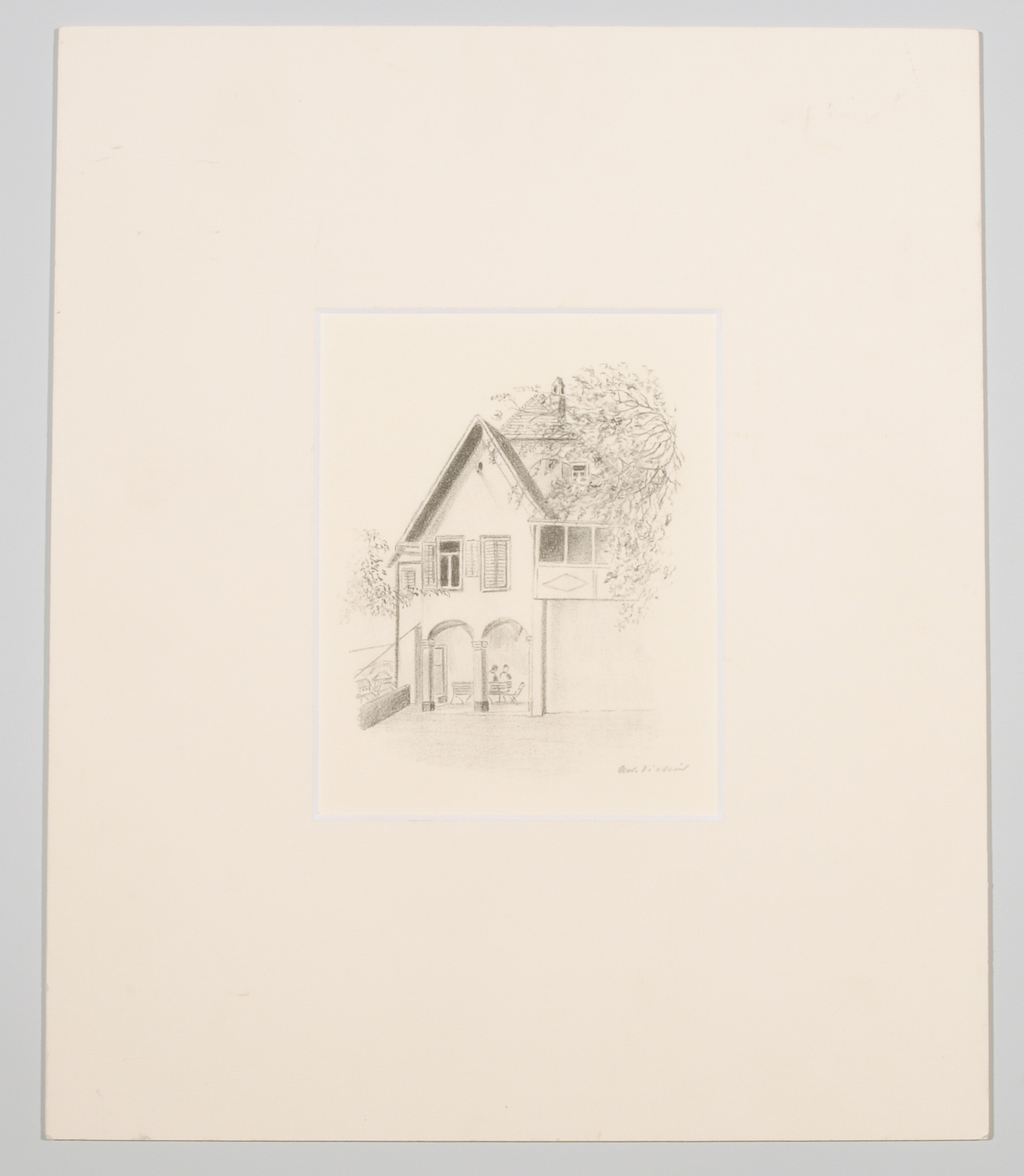 Hausansicht. Lithographie. Unten rechts signiert. Blattgrösse 29,3x20,8 cm.