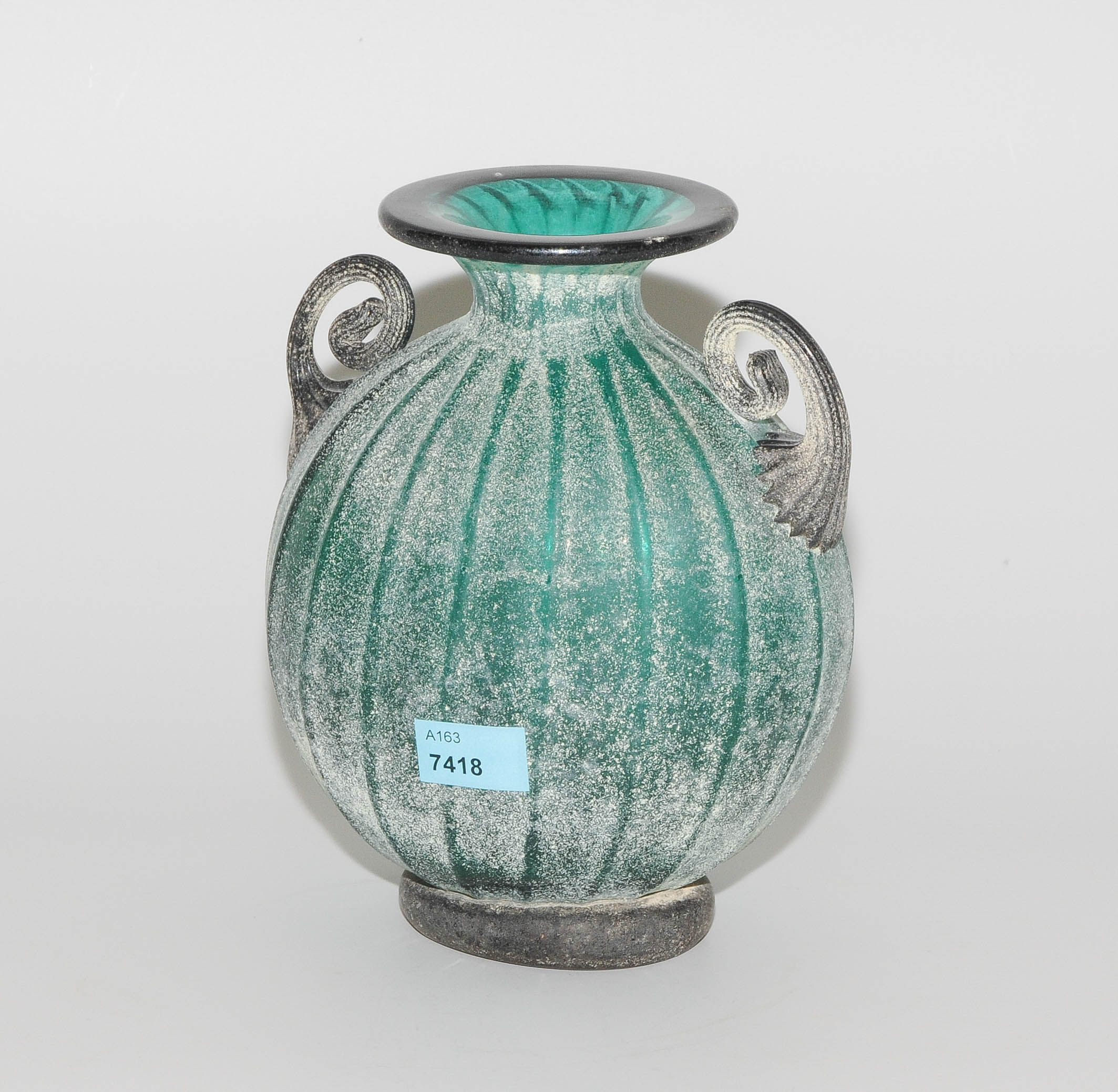 Wohl Gambaro & Poggi, um 1980. Grünes und schwarzes Glas, Oberfläche in Scavo-Technik mattiert. H 16,5 cm.
