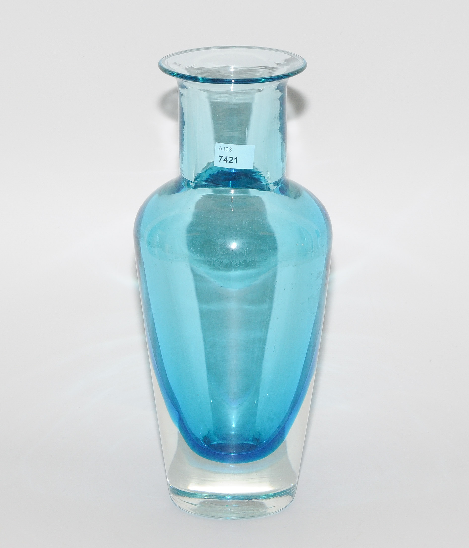 2.Hälfte 20.Jh. Unleserlich signiert. Farbloses Glas, blau verlaufend unterfangen. H 29 cm.