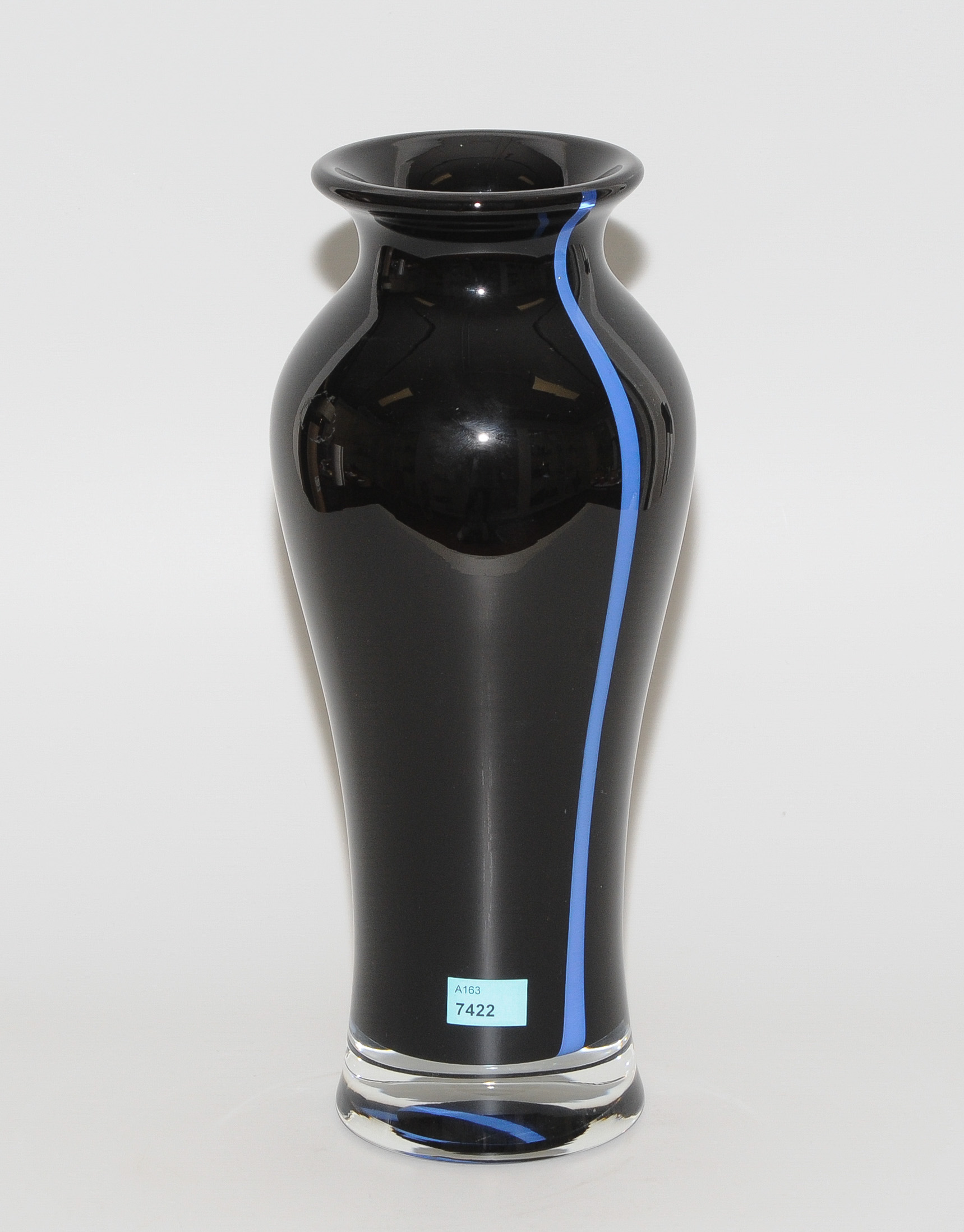 2.Hälfte 20.Jh. Farbloses Glas, schwarz und blau unterfangen. H 31 cm.