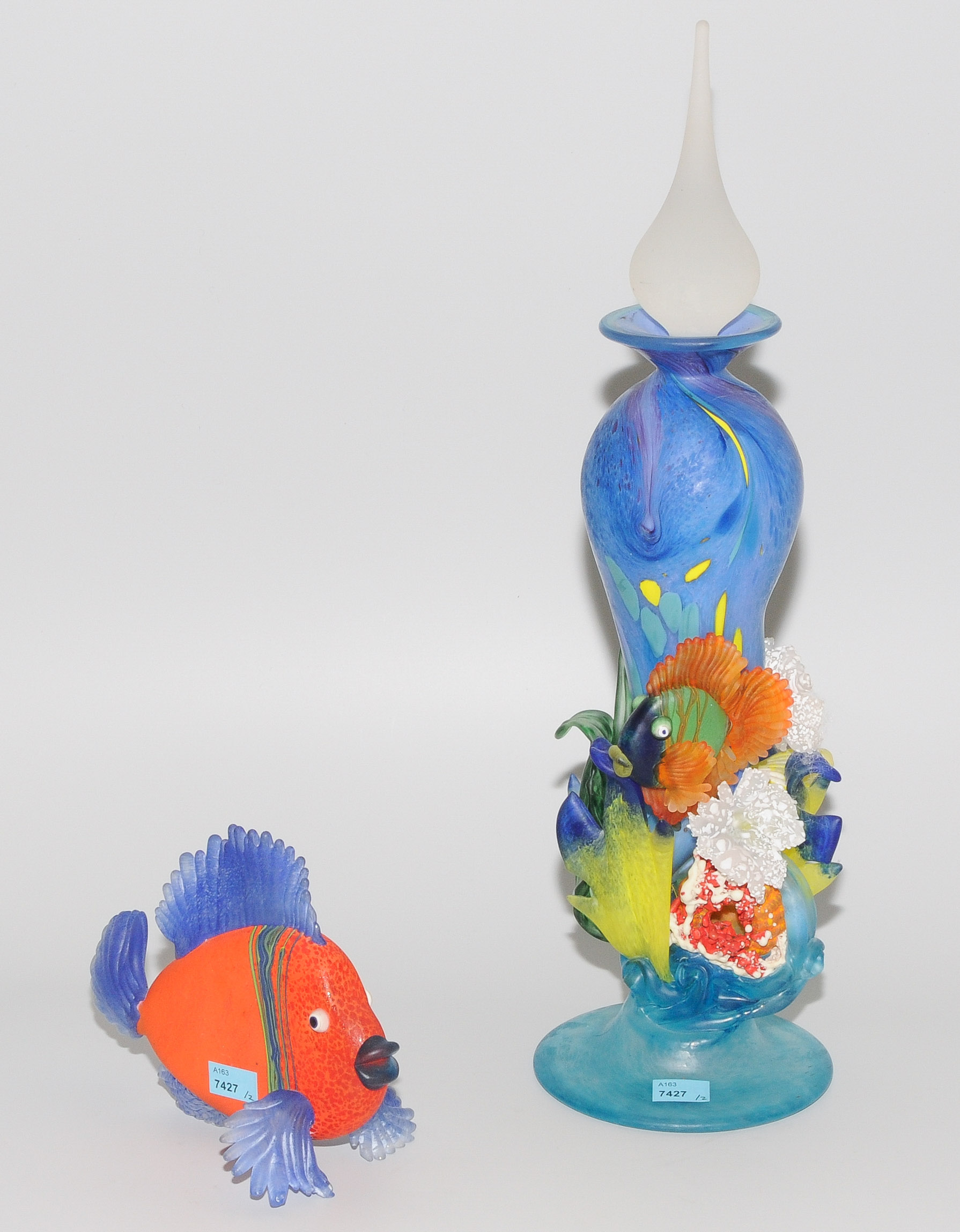 Australien, 21.Jh. Mehrfarbiges Glas. H 14,5 bzw. 47 cm.