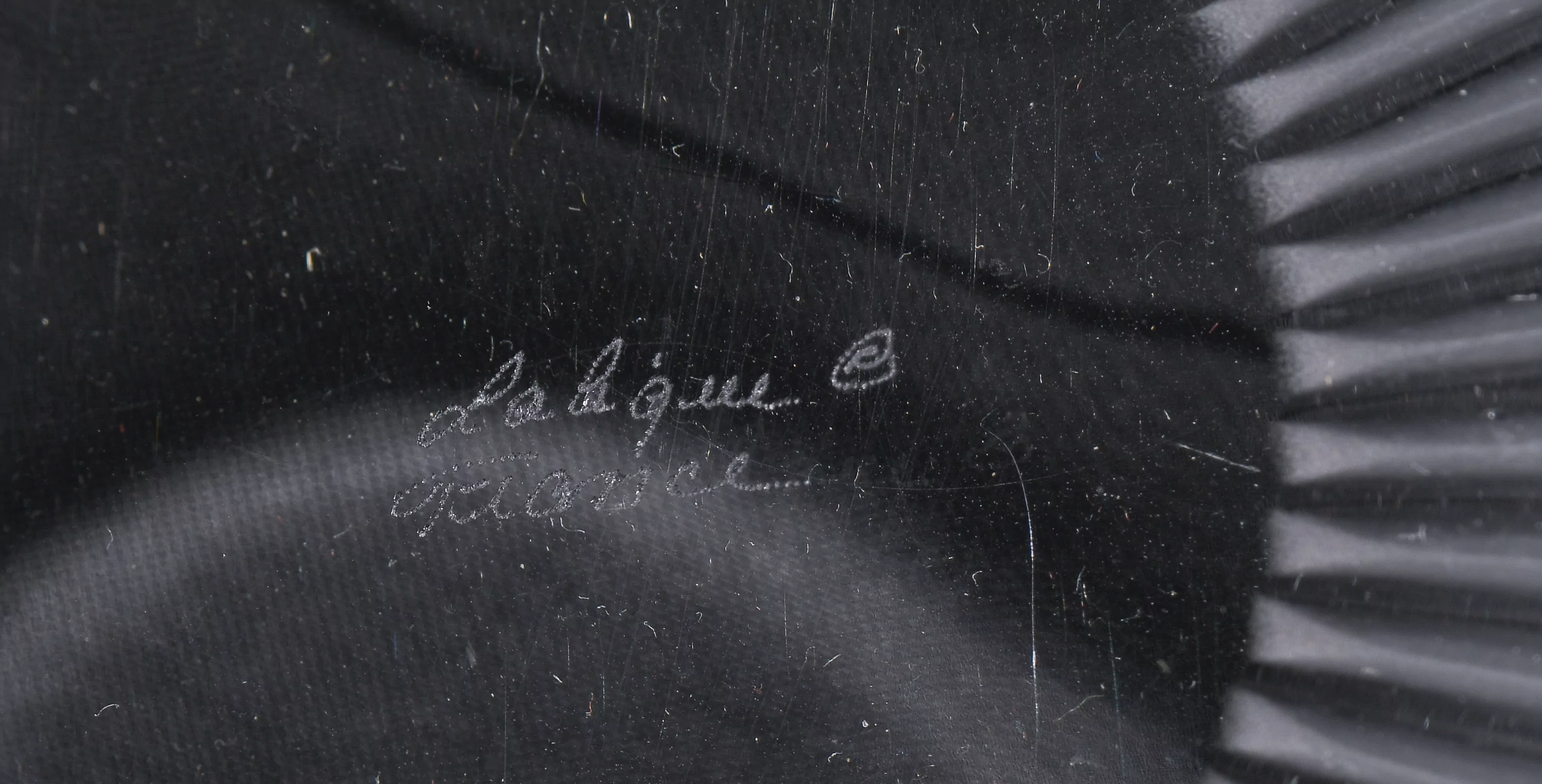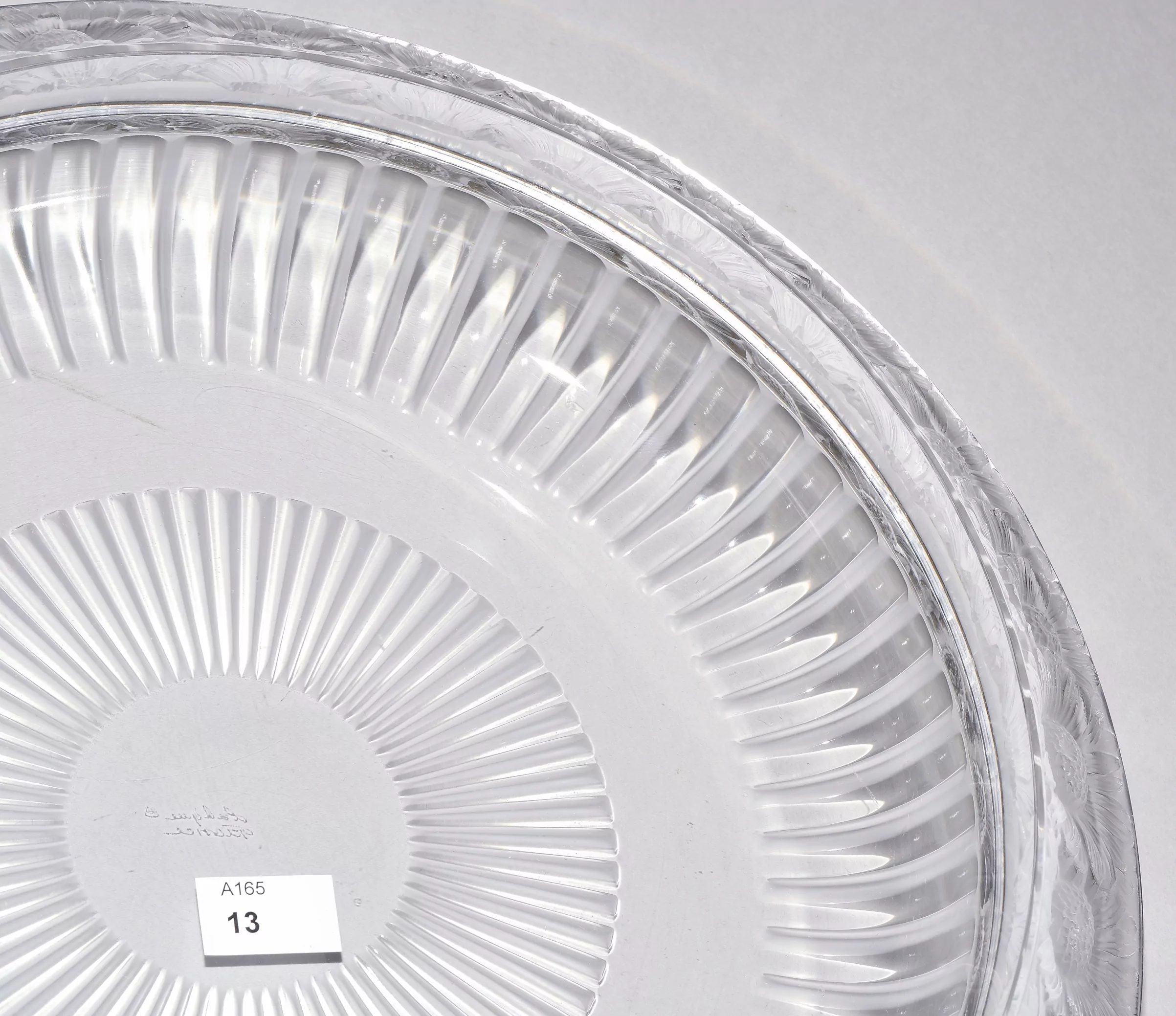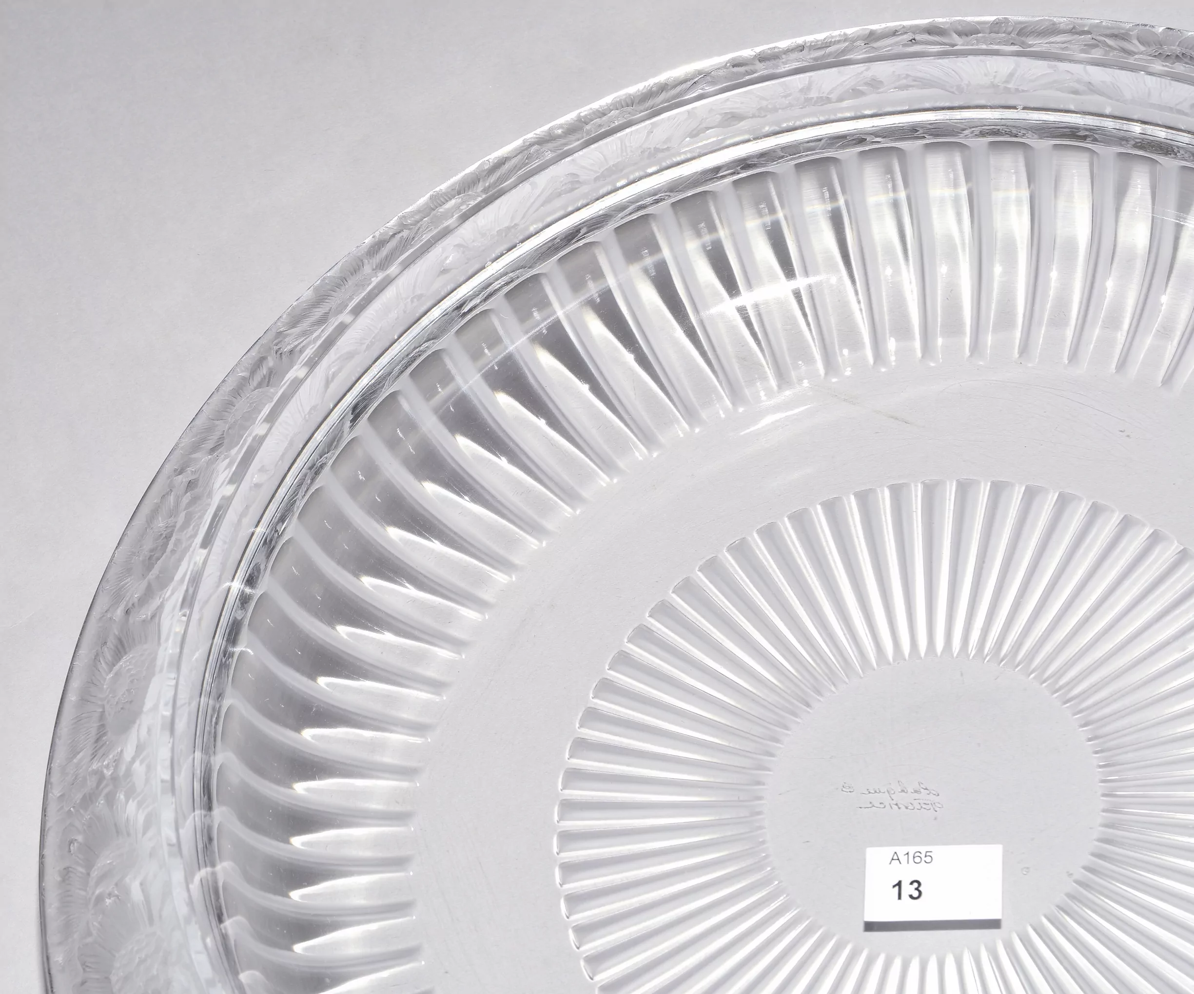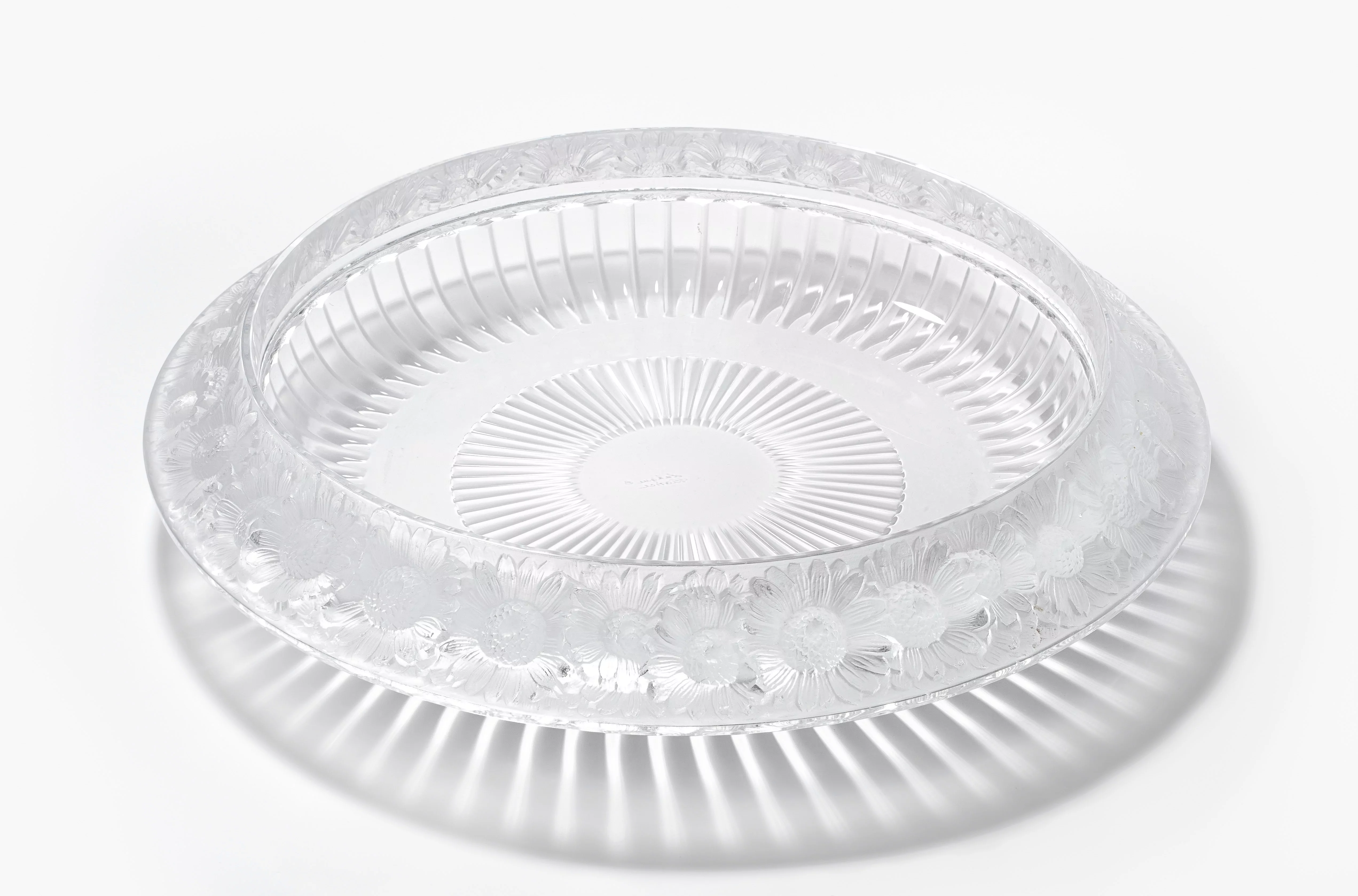 Nach 1945. Farbloses, tlw. mattiertes Glas. Modell von René Lalique, 1933. Dekor mit Margeritenblüten. D 35 cm.