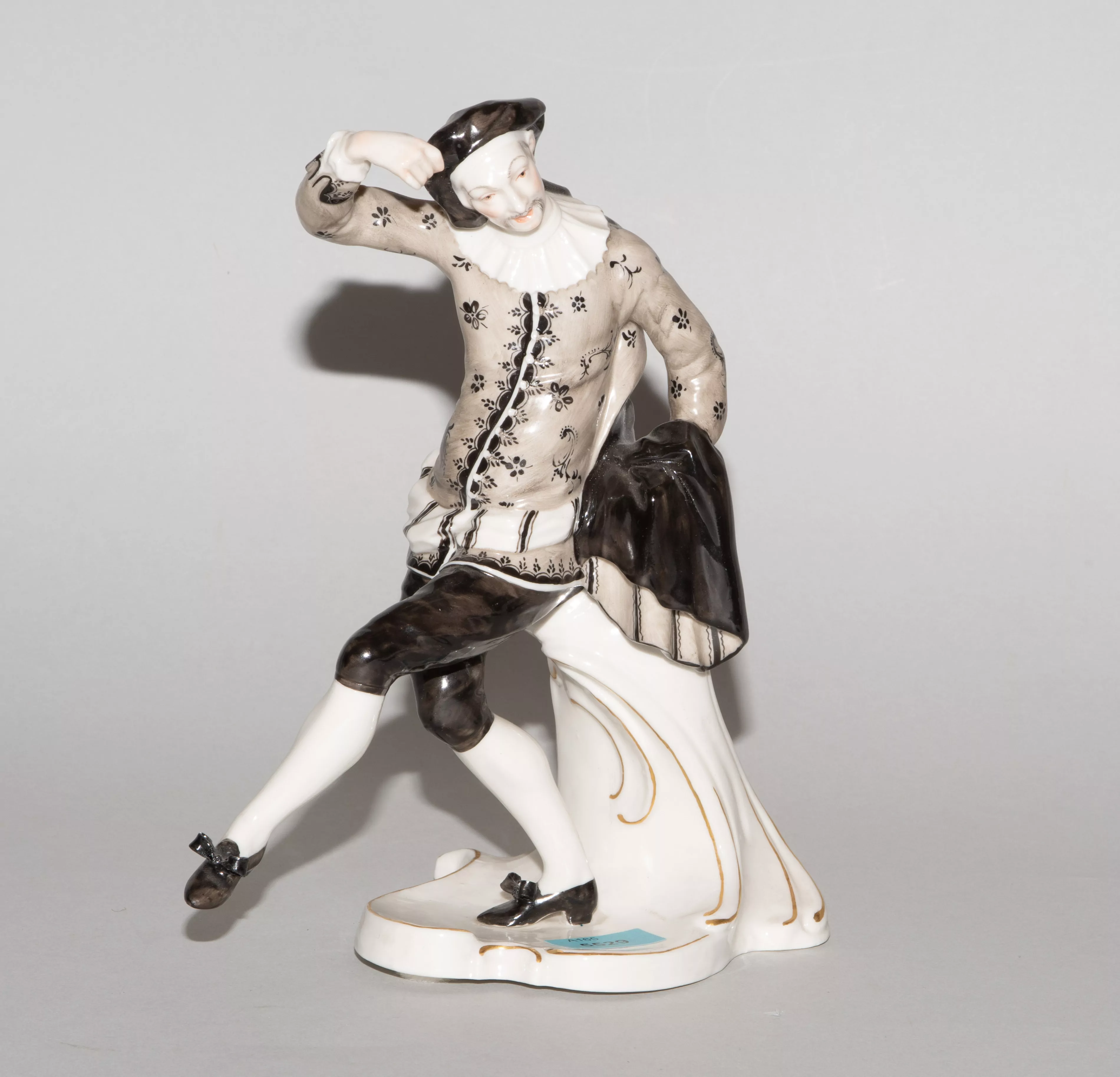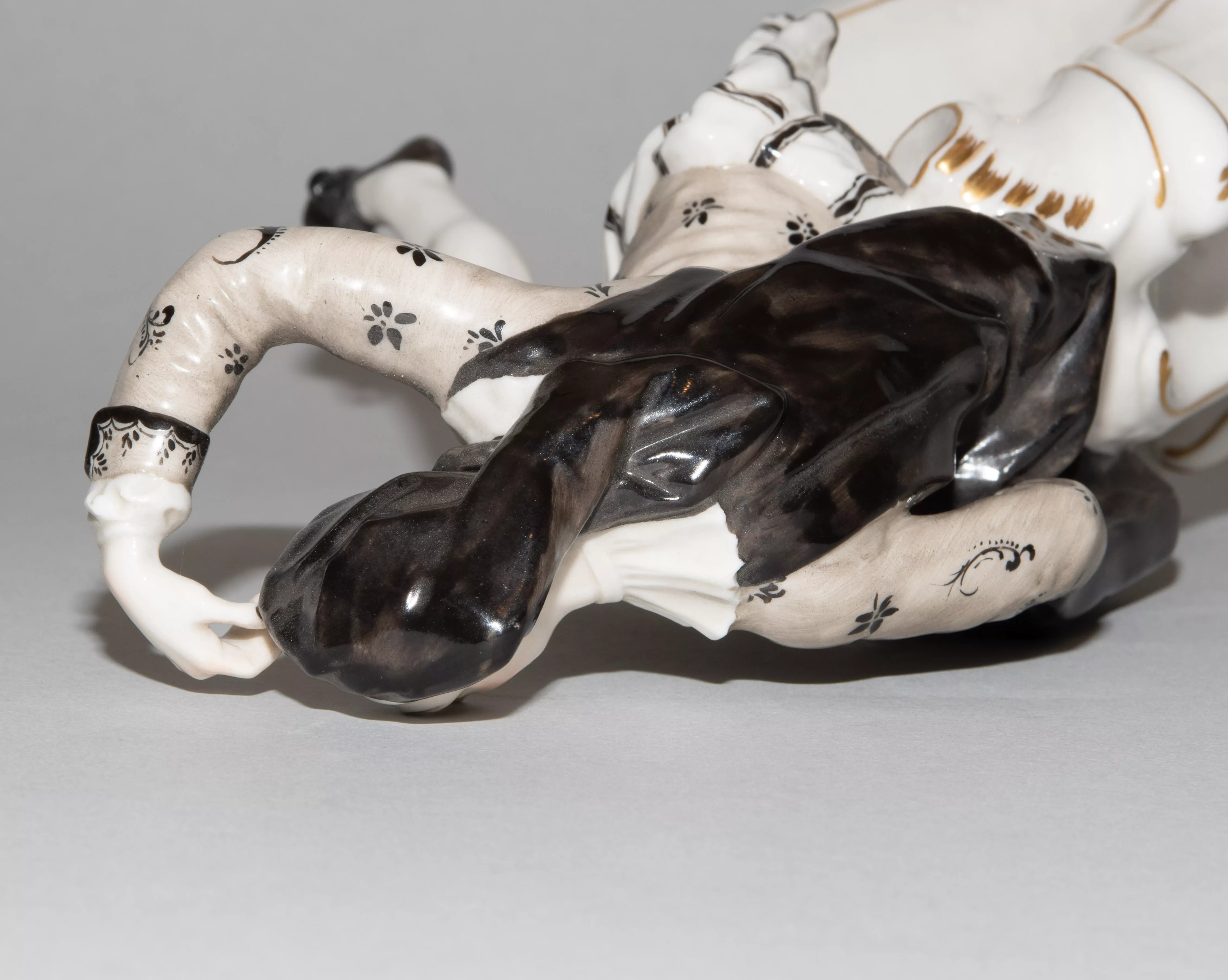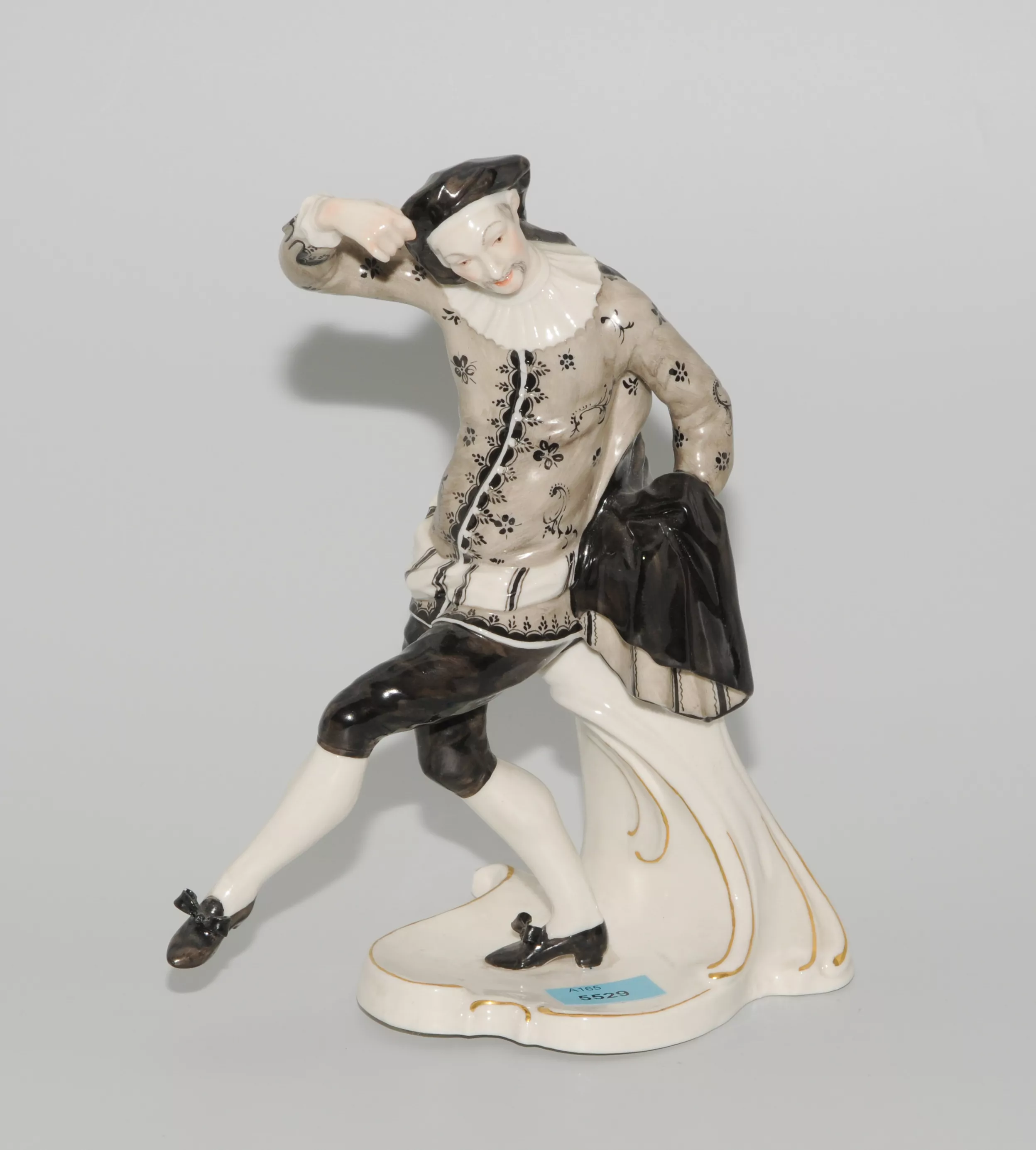 20.Jh. Porzellan. Polychrome Bemalung. Goldstaffierung. Modell Franz Anton Bustelli. Aus der Serie "Commedia dell'Arte". Scaramuz. H 21 cm.