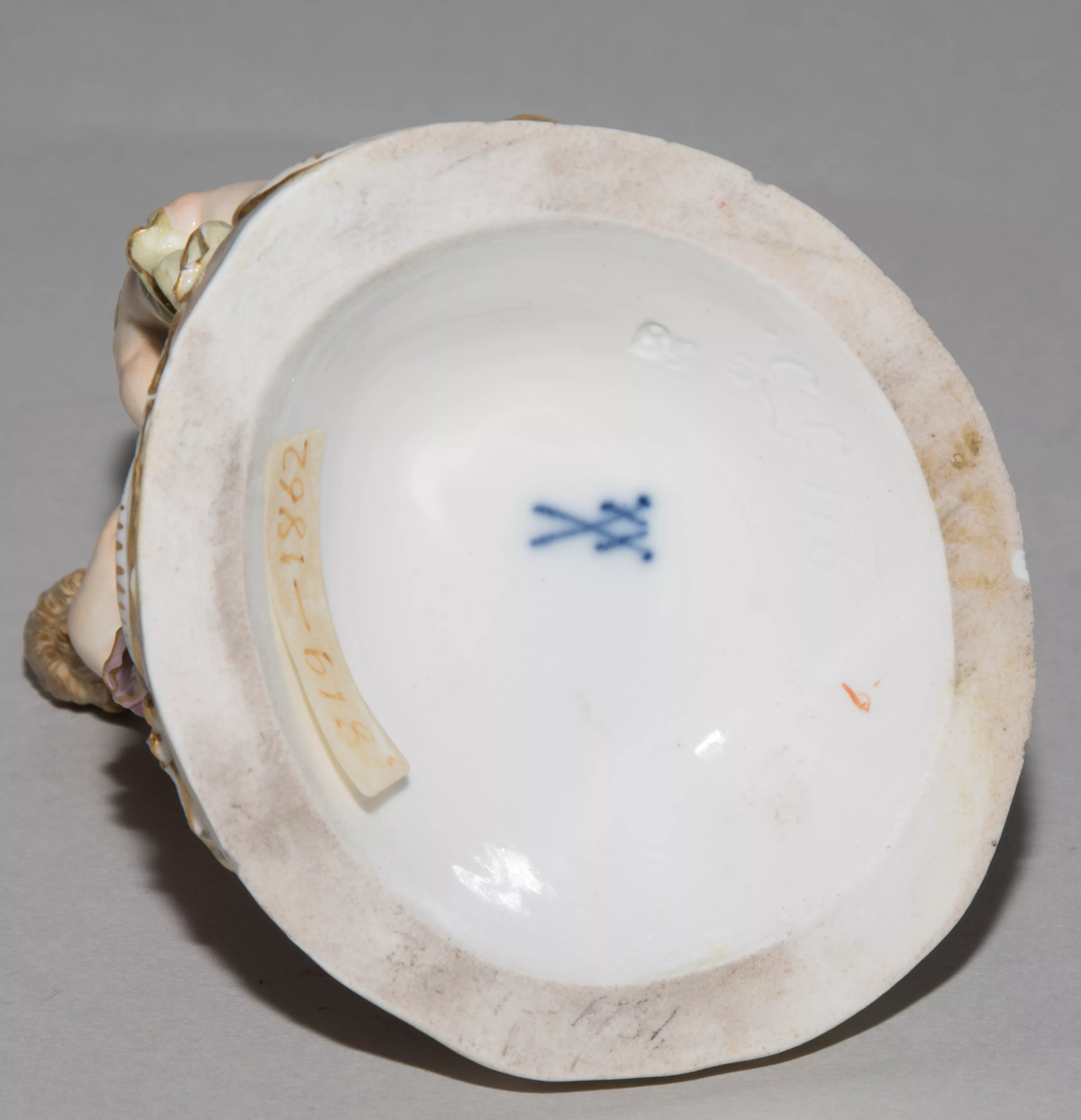 Ende 19.Jh. Porzellan, polychrom bemalt, Goldstaffierung. Unterglasurblaue Schwertermarke mit Knäufen. Allegorie - Der Winter. Modell von Johann Joachim Kändler, 1756. Modellnummer 2453. H 8,5 cm.