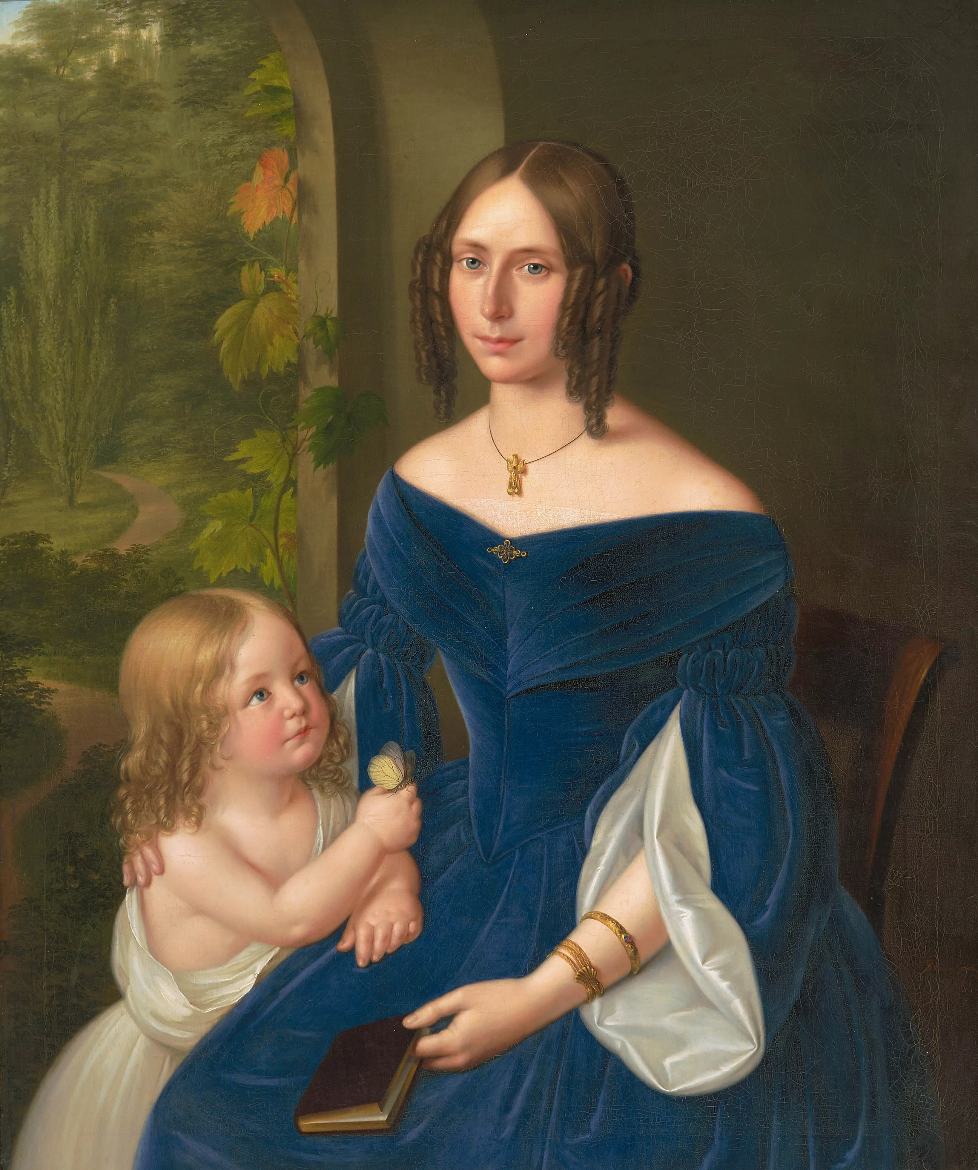 Portrait einer Mutter mit Kind. 1841. Öl auf Leinwand. Unten rechts signiert und datiert. 95x79 cm. Gerahmt.