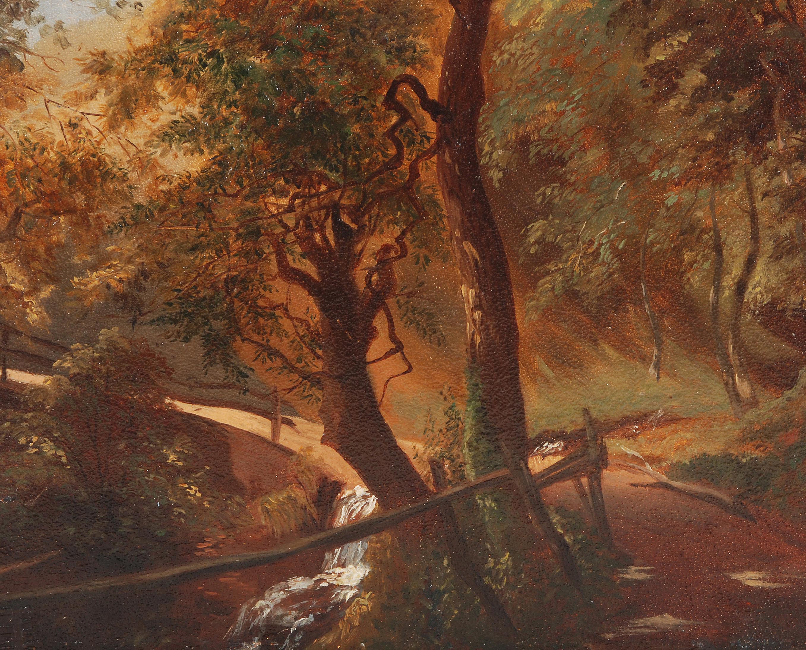 "Natürliche Brücke über die Tamina bei Pfäfers", 1852. Öl auf Papier über Karton. 25,5x30,5 cm. -Retuschierter Riss im untersten Bildteil.