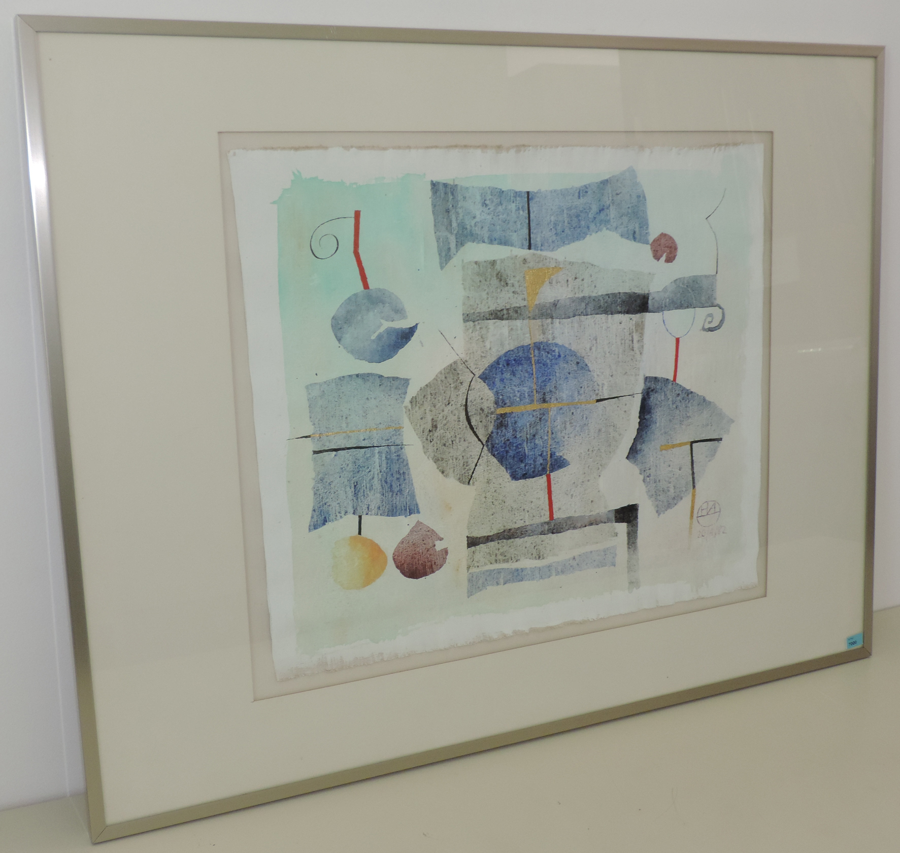 Ohne Titel. 1982. Mischtechnik auf Leinwand. Unten rechts monogrammiert und datiert: "20/4/82". 49x57 cm. Gerahmt.
