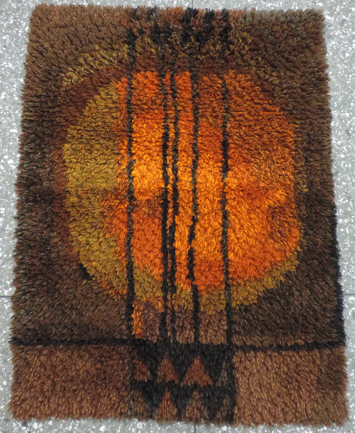 "Sesam". Genüpfter Teppich. Verso mit Etikett. 130x100 cm.