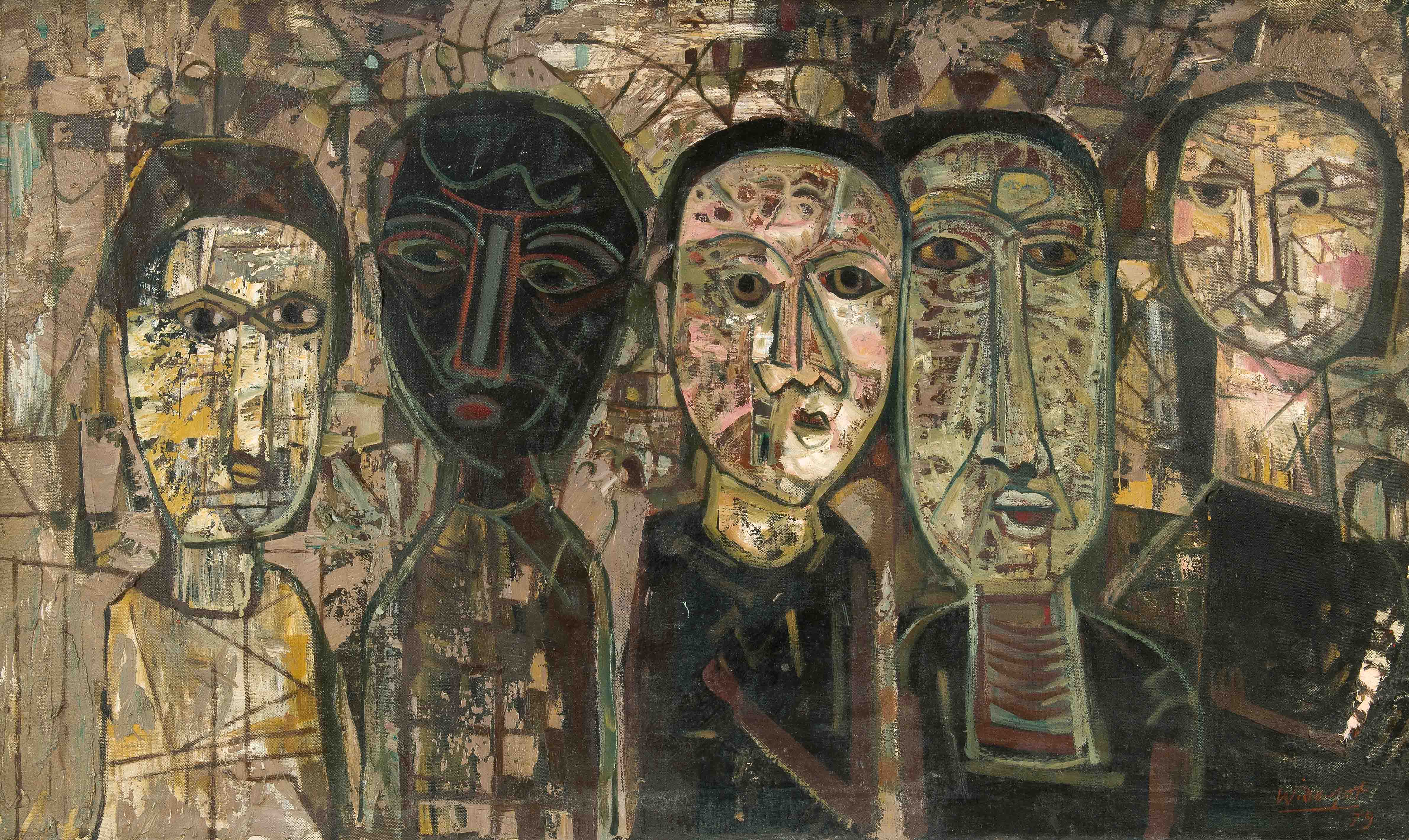 Köpfe. Öl auf Leinwand. 1979. Unten rechts signiert und datiert. 59x99 cm.