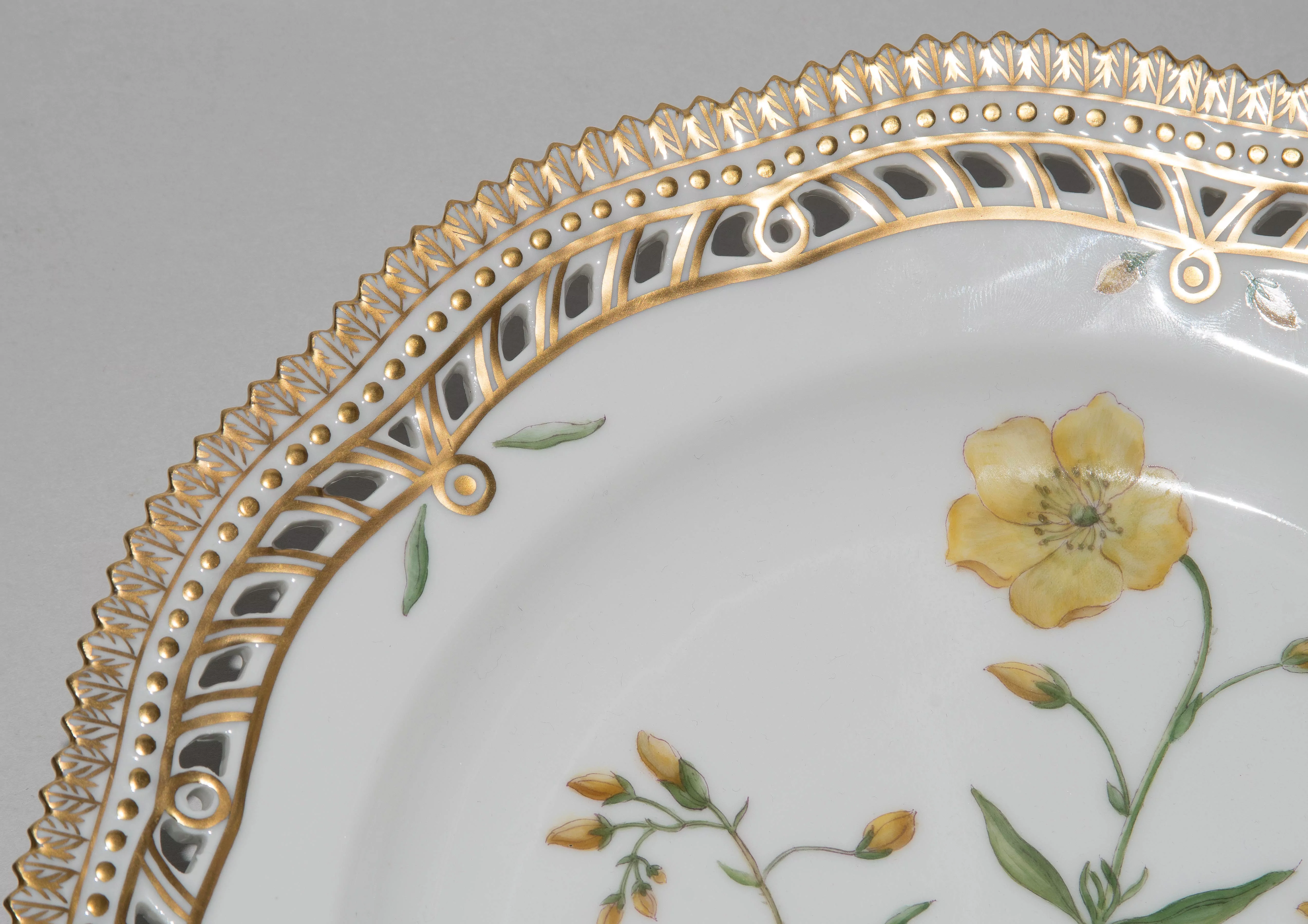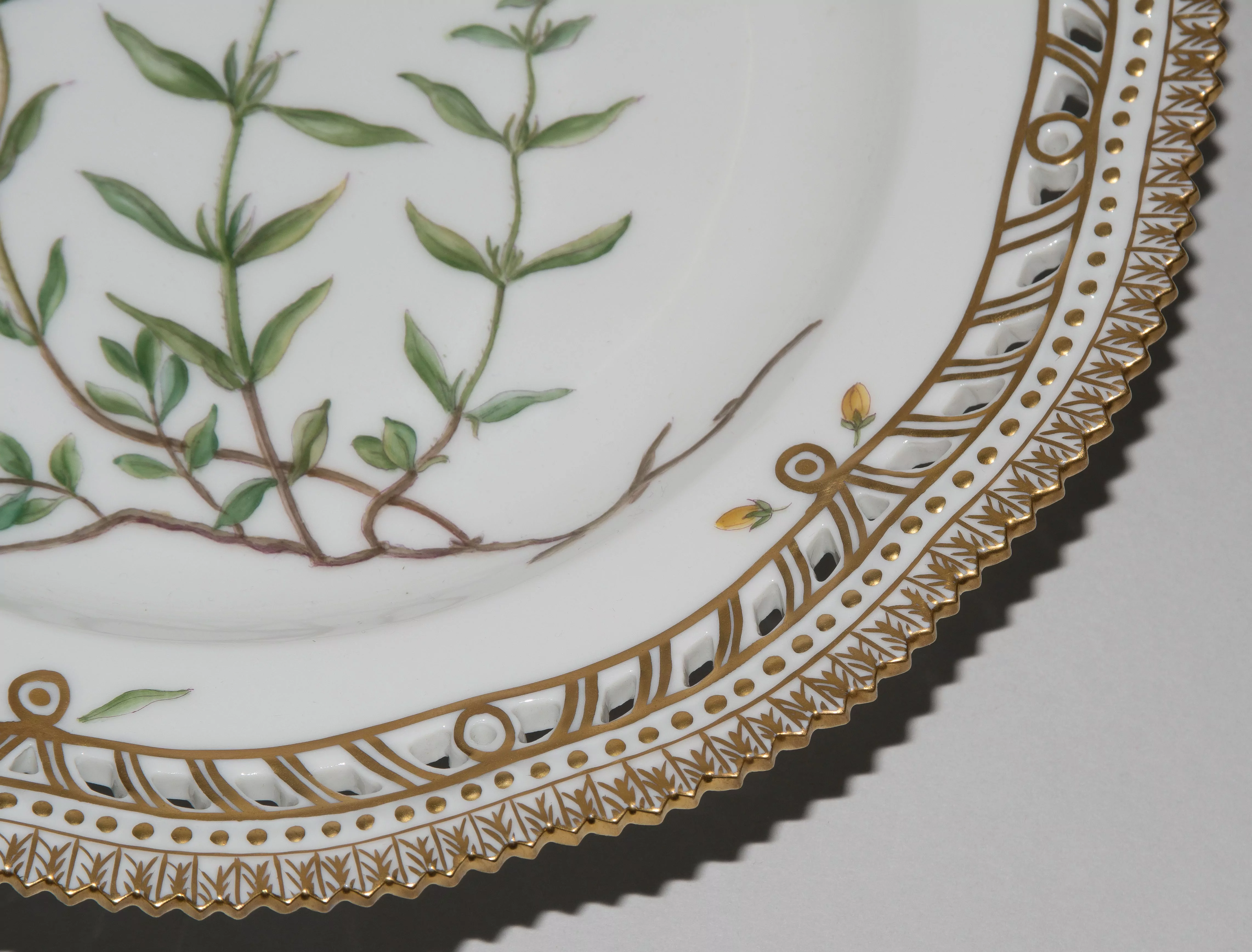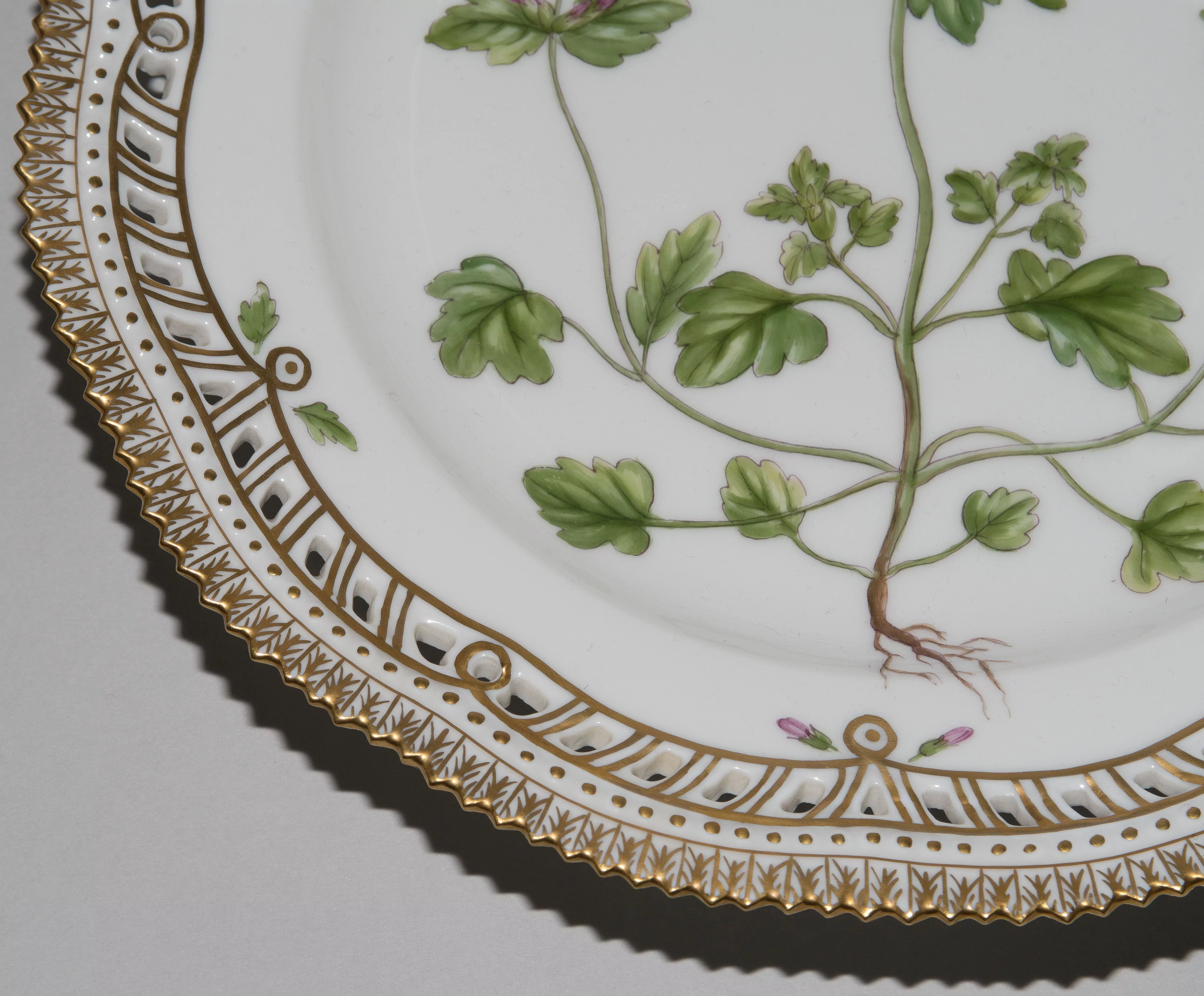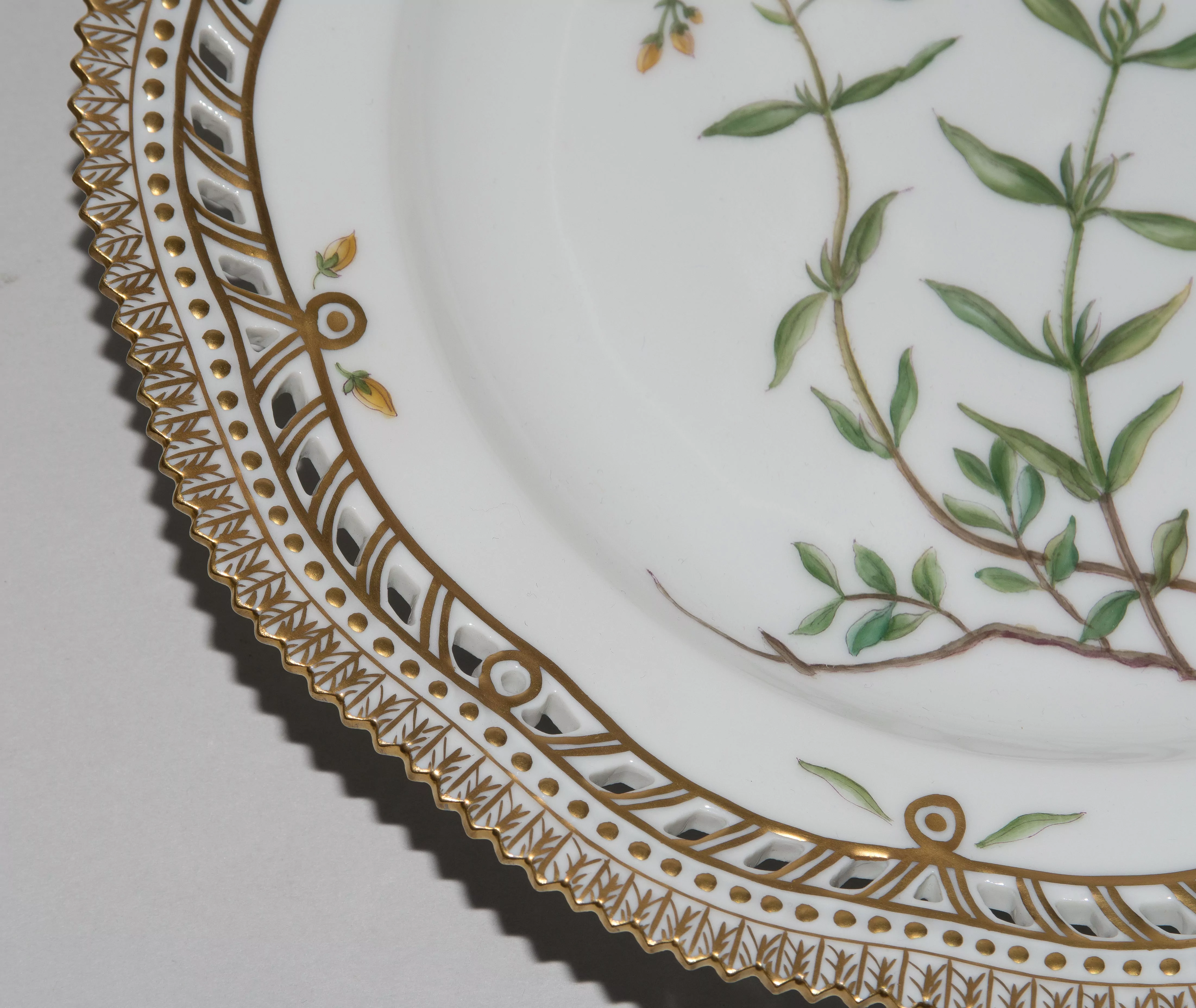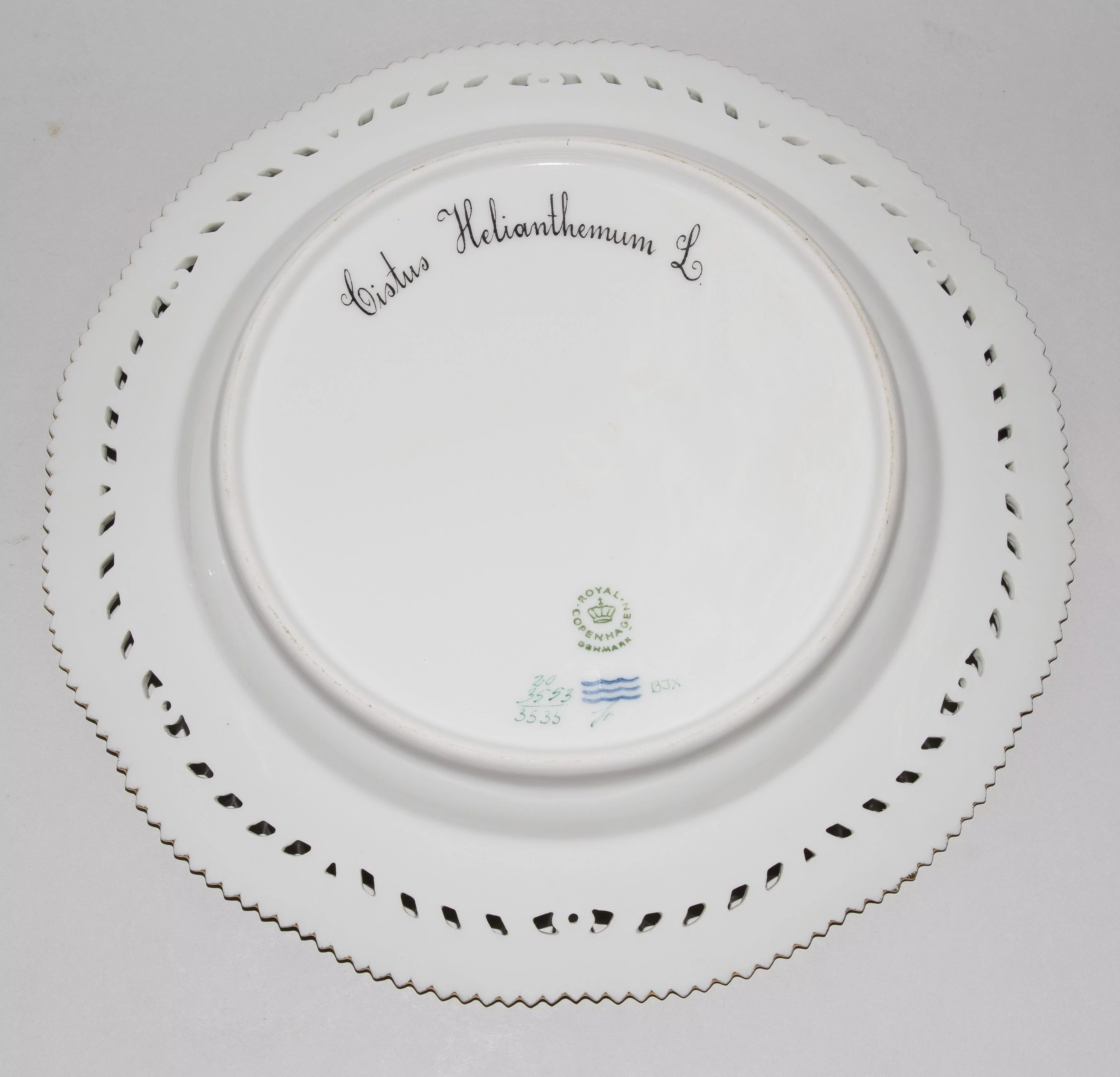 1969–73. Porzellan. Manufakturmarke, grüne Nummern "20/3553" und "20/3553/3535". Im Spiegel Pflanzendarstellung in polychromer Malerei. Goldstaffierung. Reliefierter und gezackter Rand. Durchbruchdekor. Rückseitig bezeichnet "Cistus Helianthemum L." und "Lamium intermedium Fr.". D 25 cm.