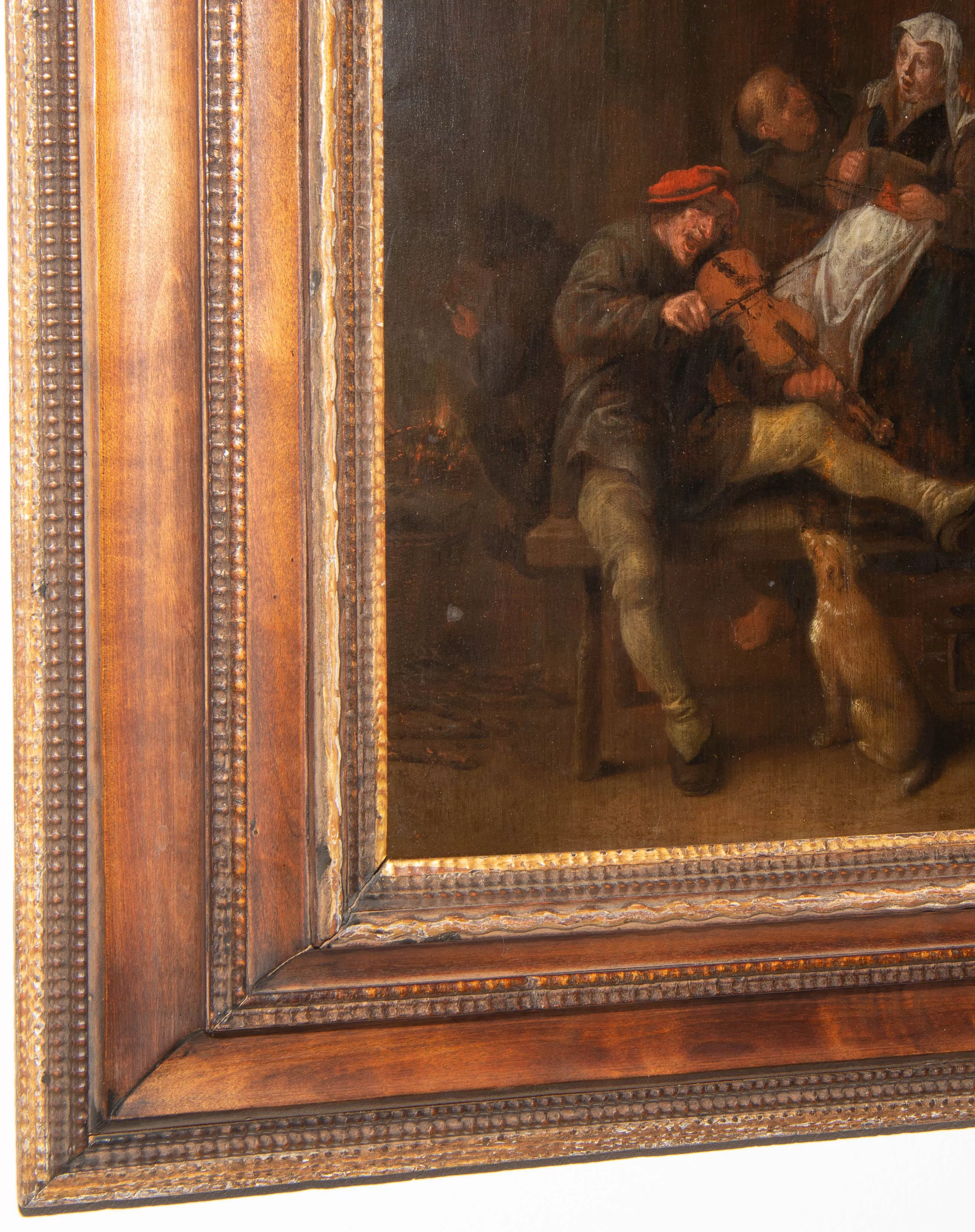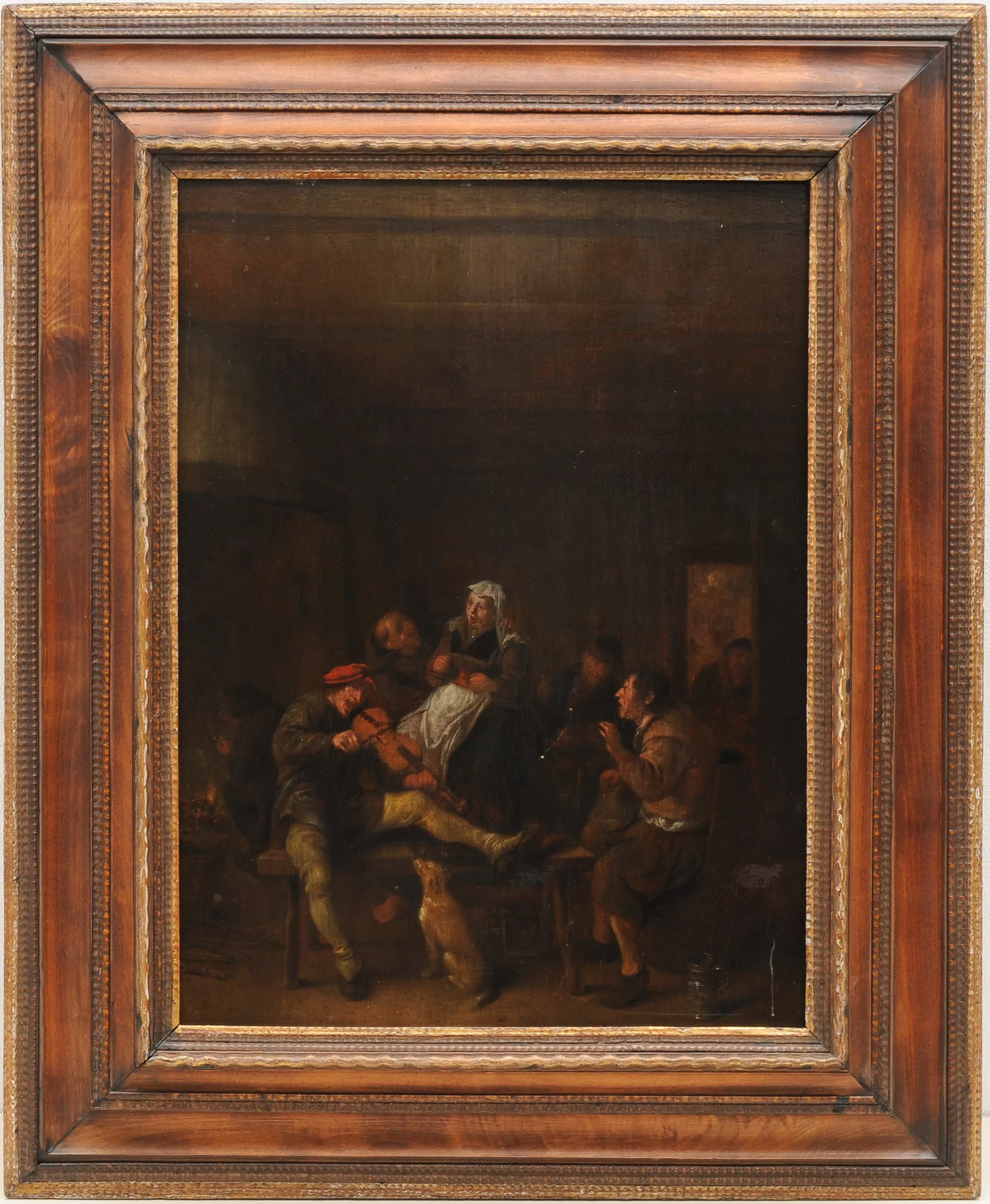 Wirtshausszene. Öl auf Holz. 49x37 cm. Gerahmt.
