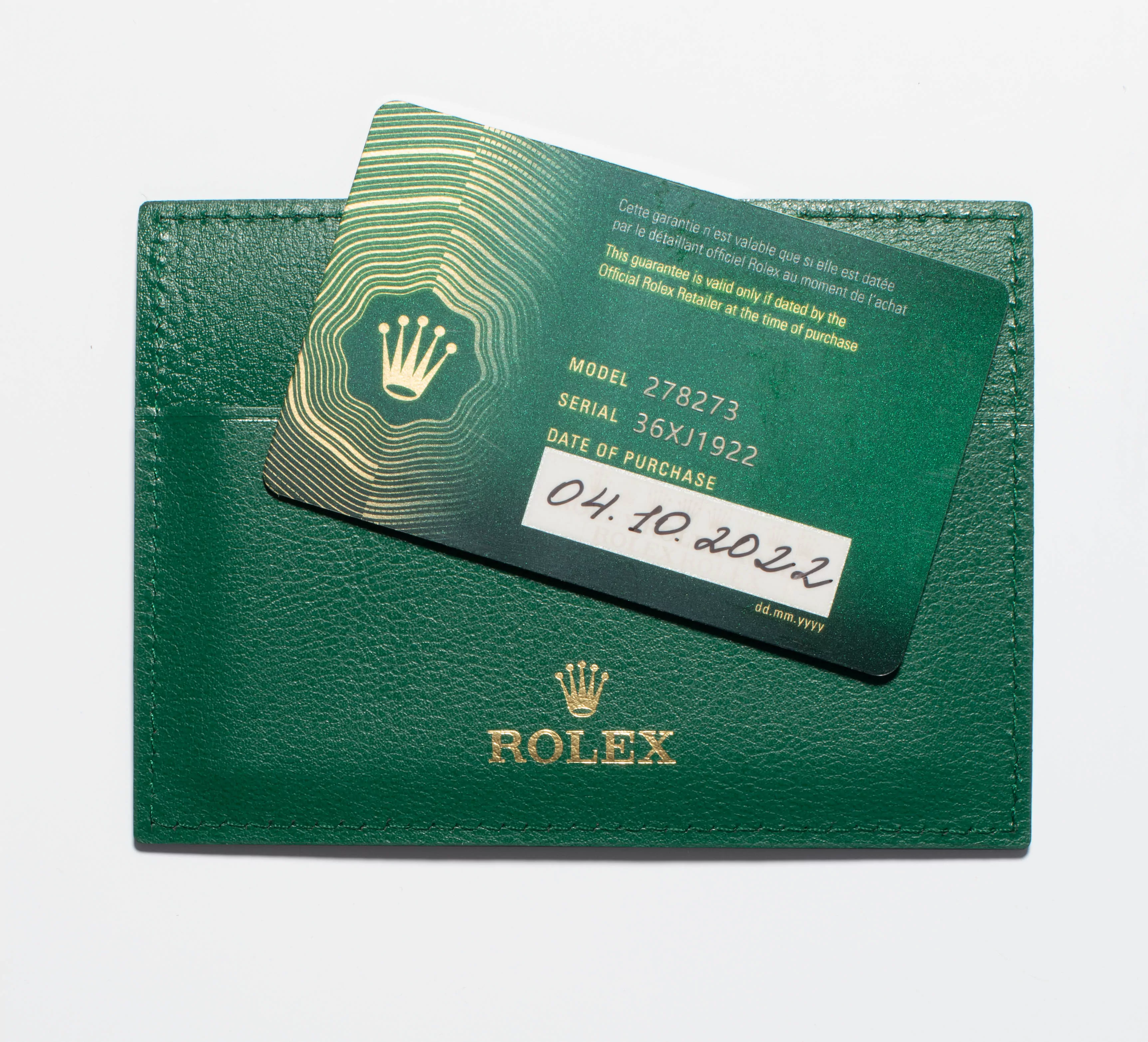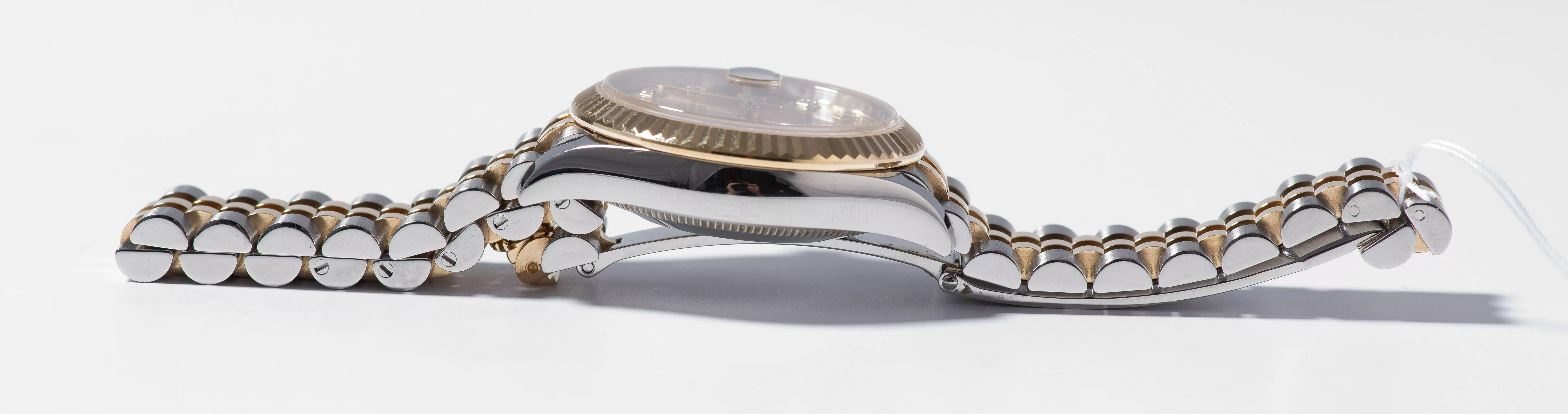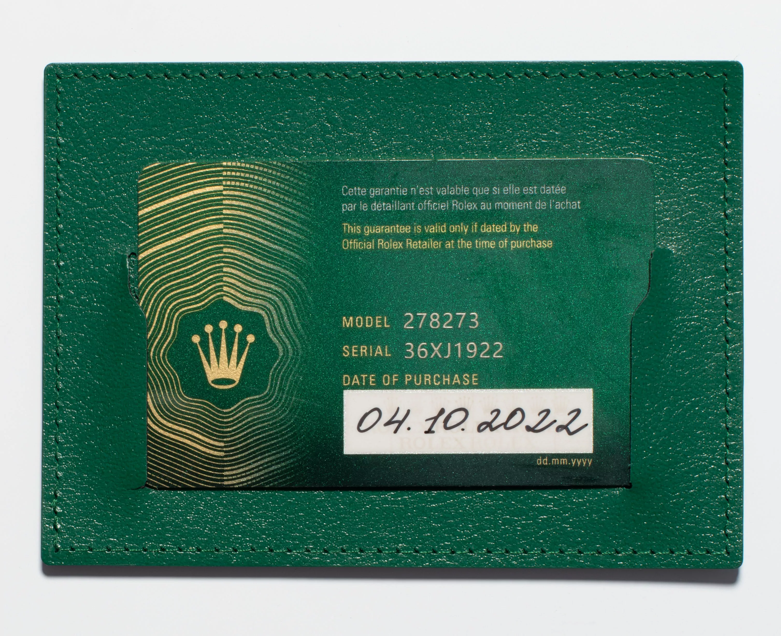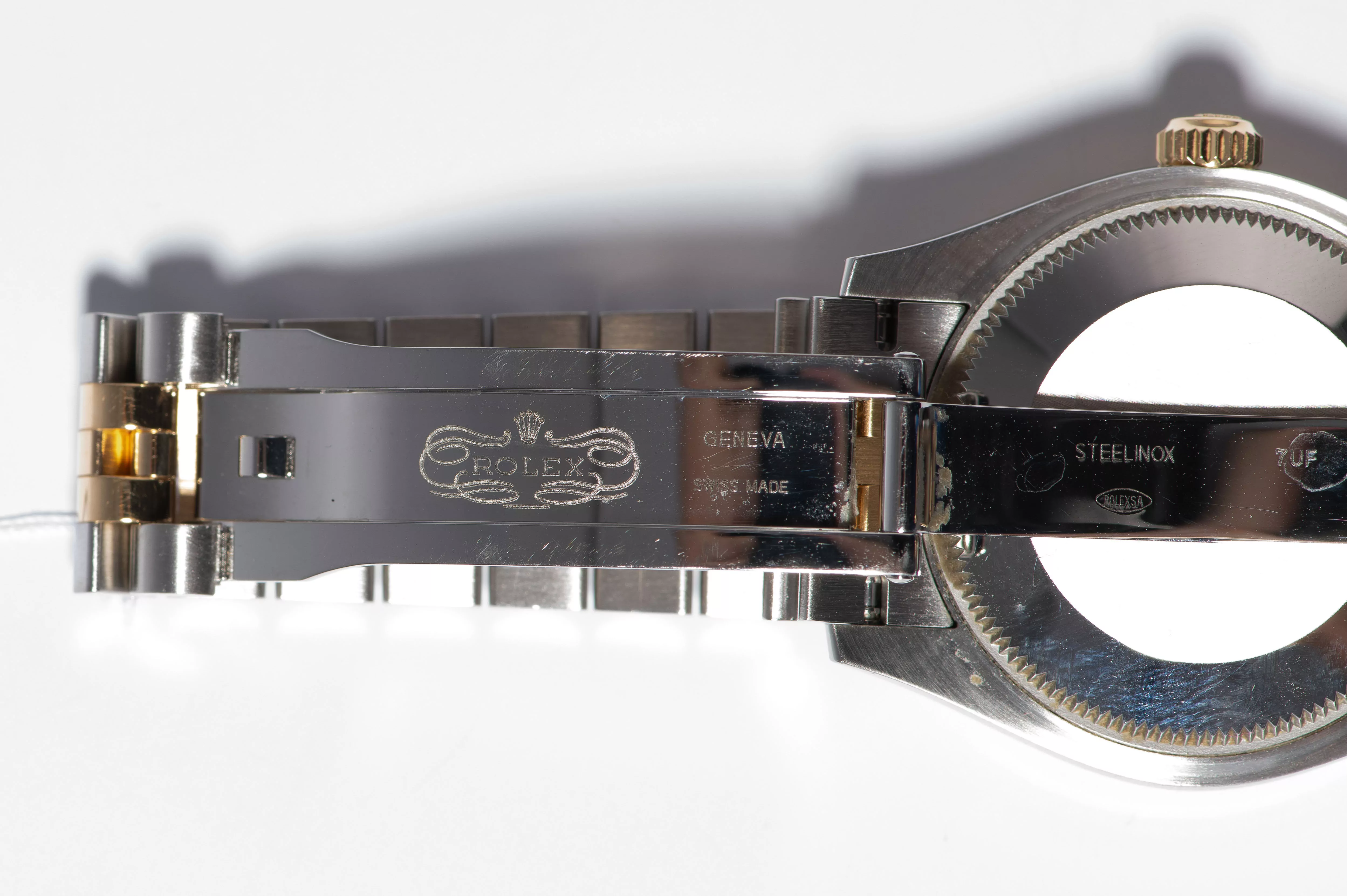 Ref. 278283. Serien Nr. 36XJ1922. Gelbgold/Edelstahl. Gehäuse 30 mm, geriffelte Lünette. Automatik Kal. 2236. Champagnerfarbenes Zifferblatt mit Radialschliff, aufgesetzten Diamant-Indizes, Stabzeigern und Zentralsekunde. Datum bei 3 Uhr. Saphirglas mit Zykloplupe. Bicolor Jubilee-Band mit Faltschliesse. Funktionstüchtig. Neuwertig. Mit Rechnung von Beyer und Zertifikat und Box vom Oktober 2022.