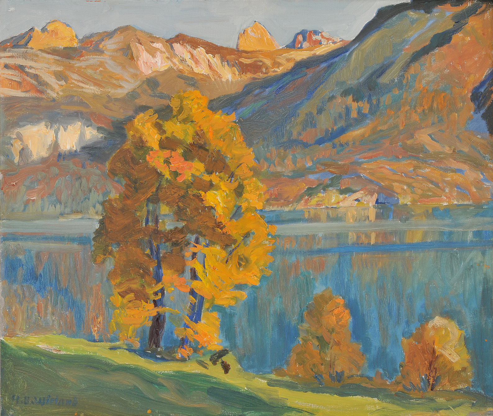 "Bei Niederried am Brienzersee". Öl auf Leinwand. Unten links signiert, verso auf Künstleretikett bezeichnet. 54x64,5 cm.
