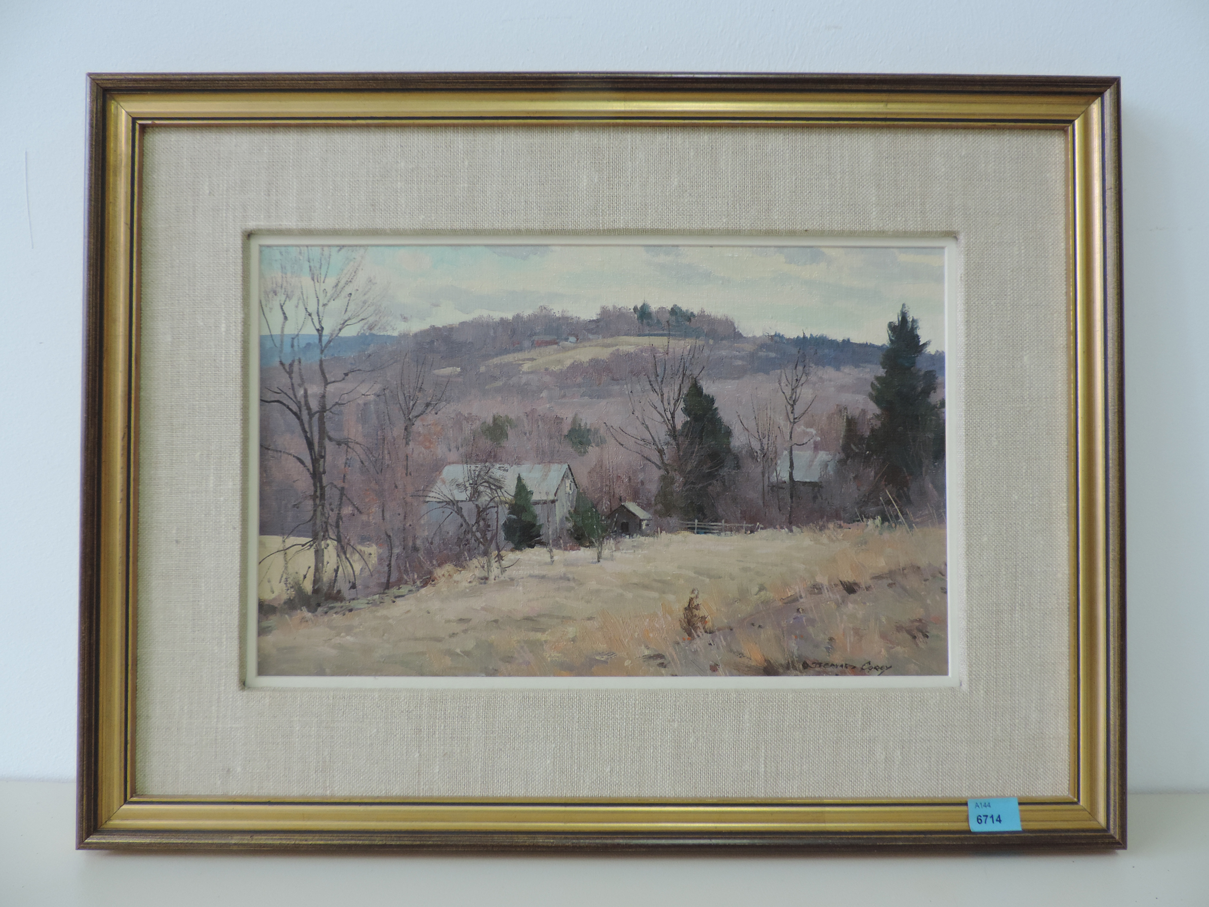 Landschaft in Neuengland. Öl auf Malplatte. Unten rechts signiert. 23x36 cm.