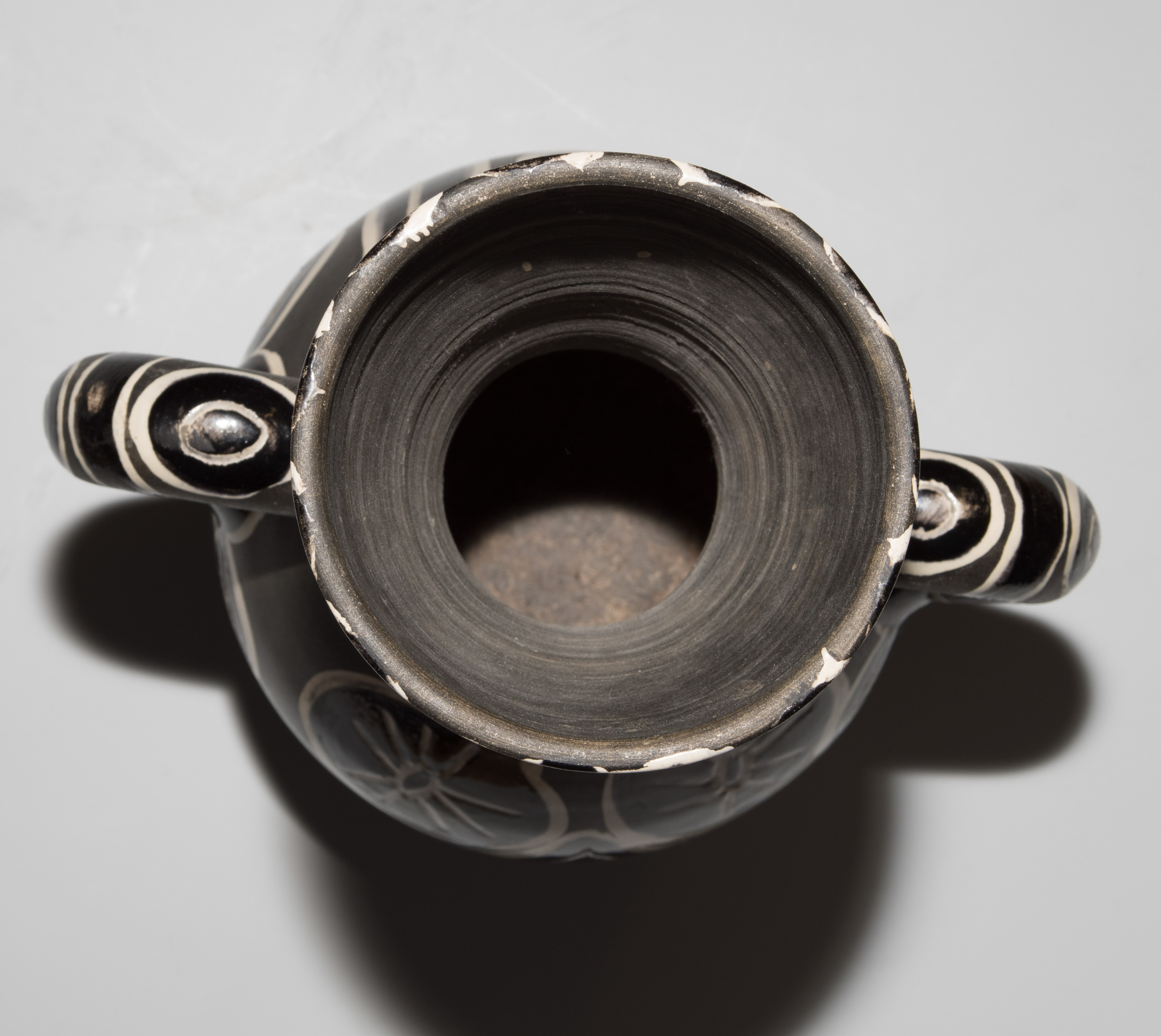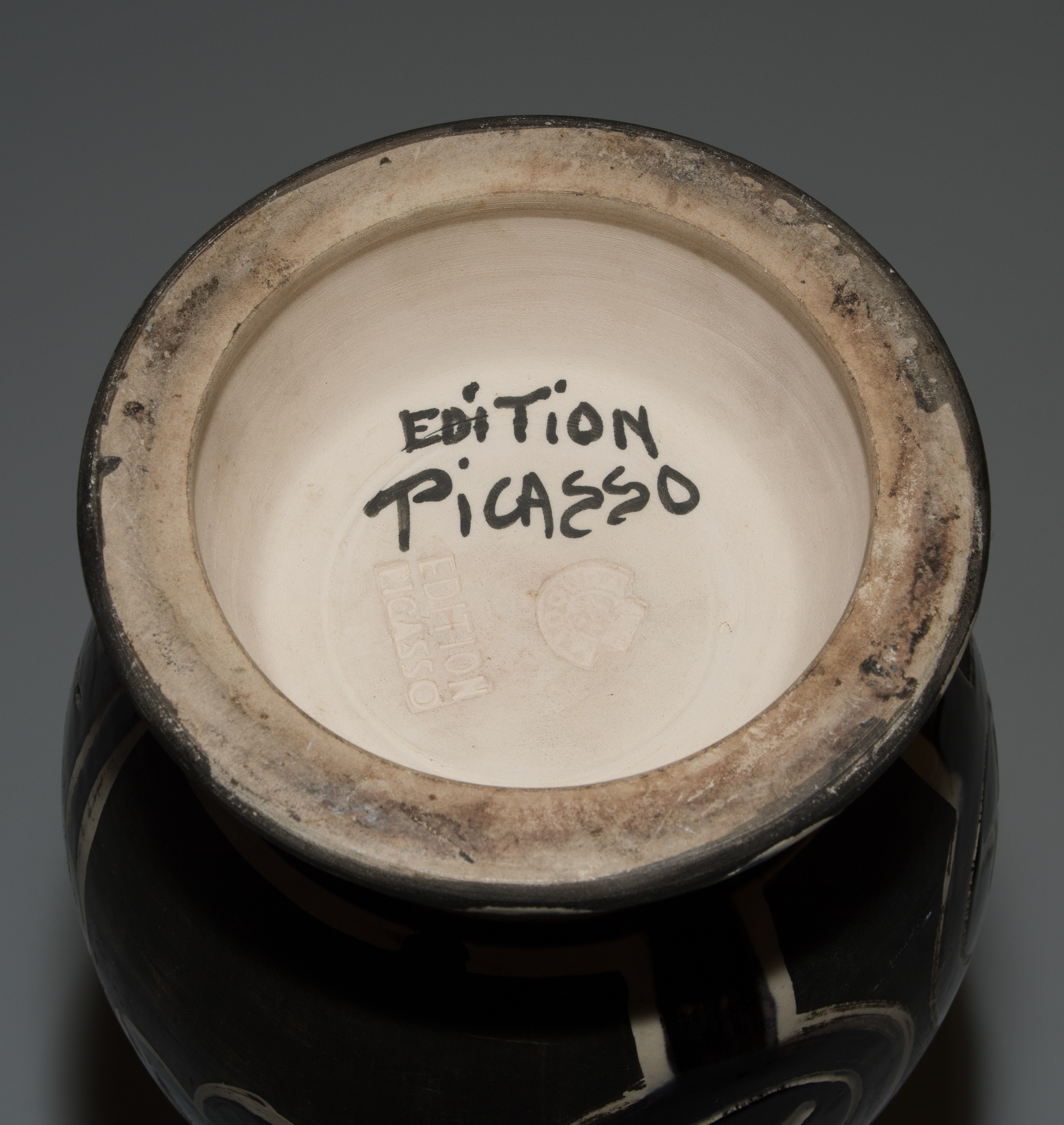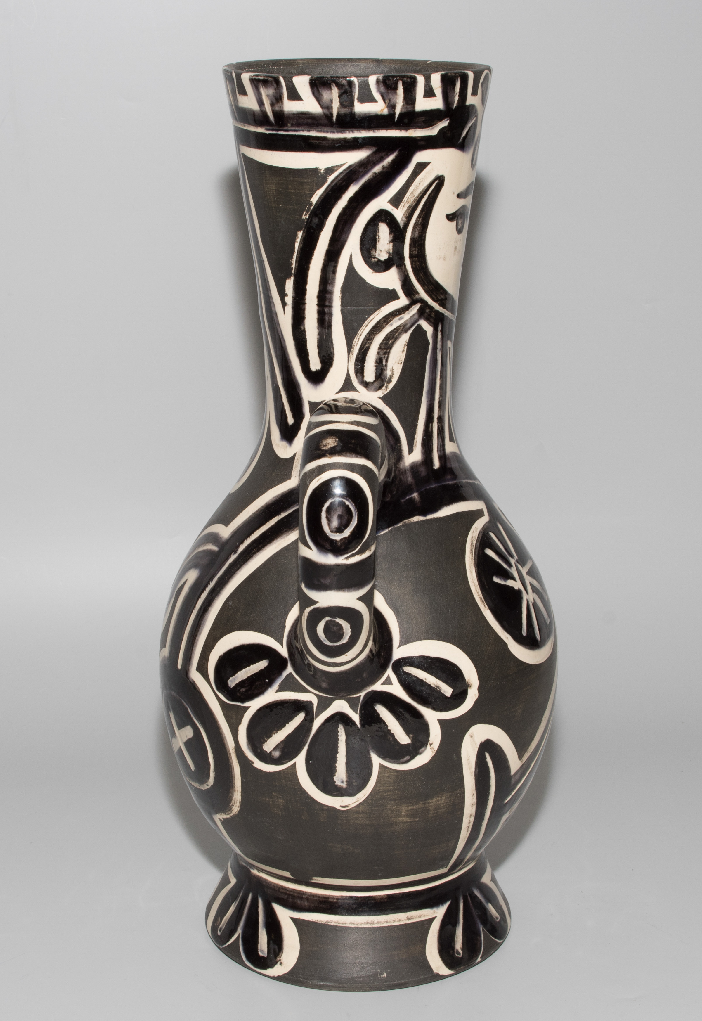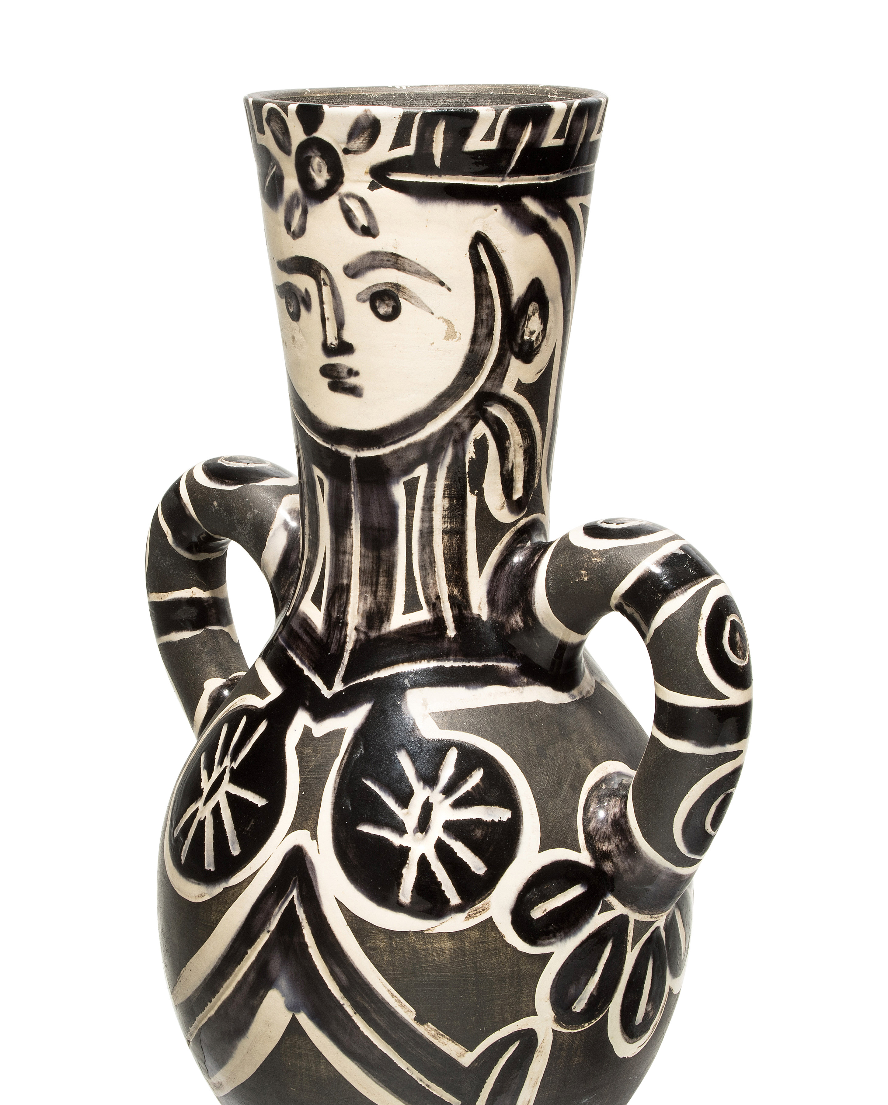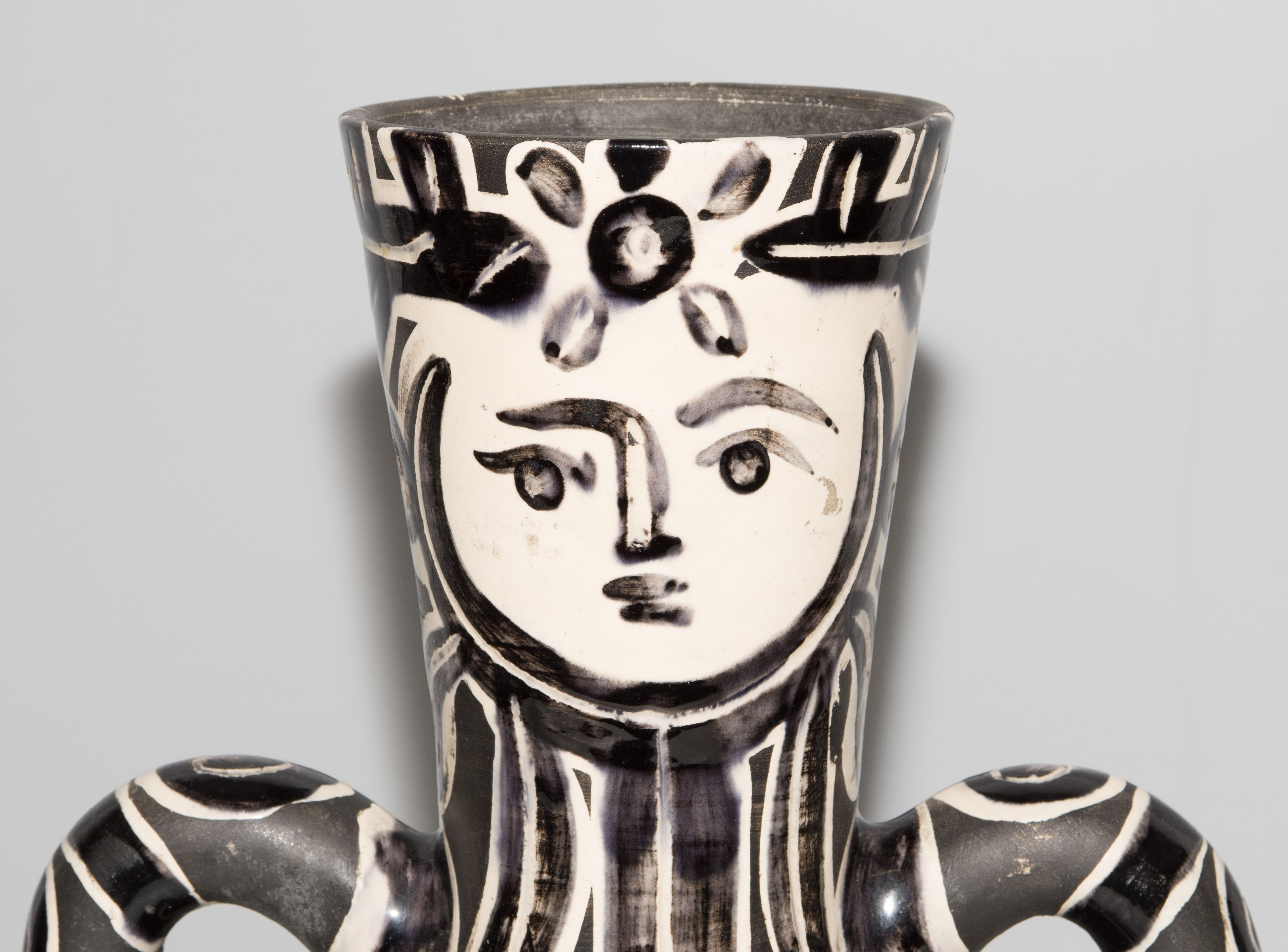 "Vase with two high handles". 1953. Keramikvase. Auf dem Boden bezeichnet: "Edition Picasso" und mit Stempel: "Edition Picasso" und "Madoura feu". Eines von 400 Exemplaren. H 39 cm. -Patina.