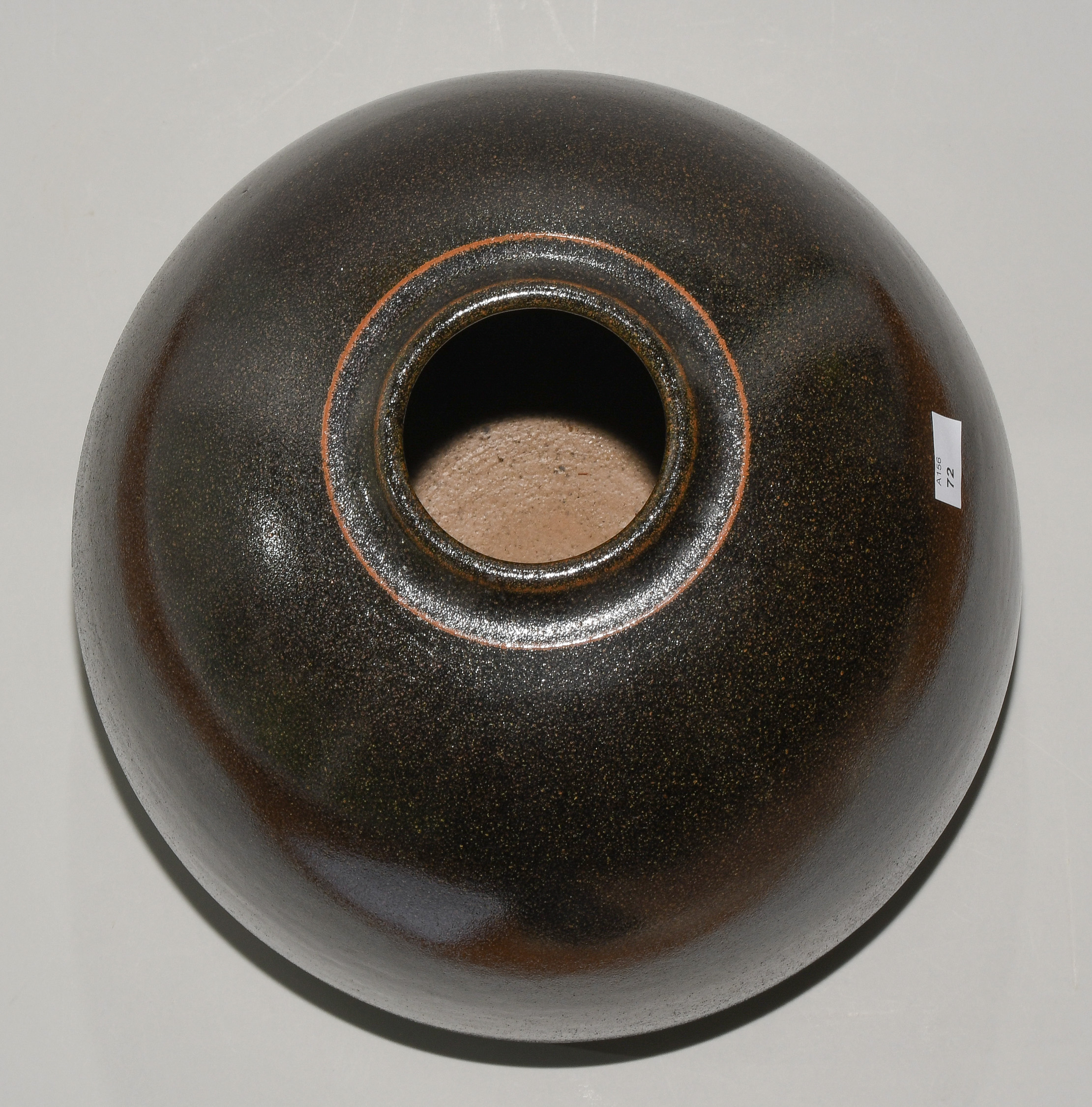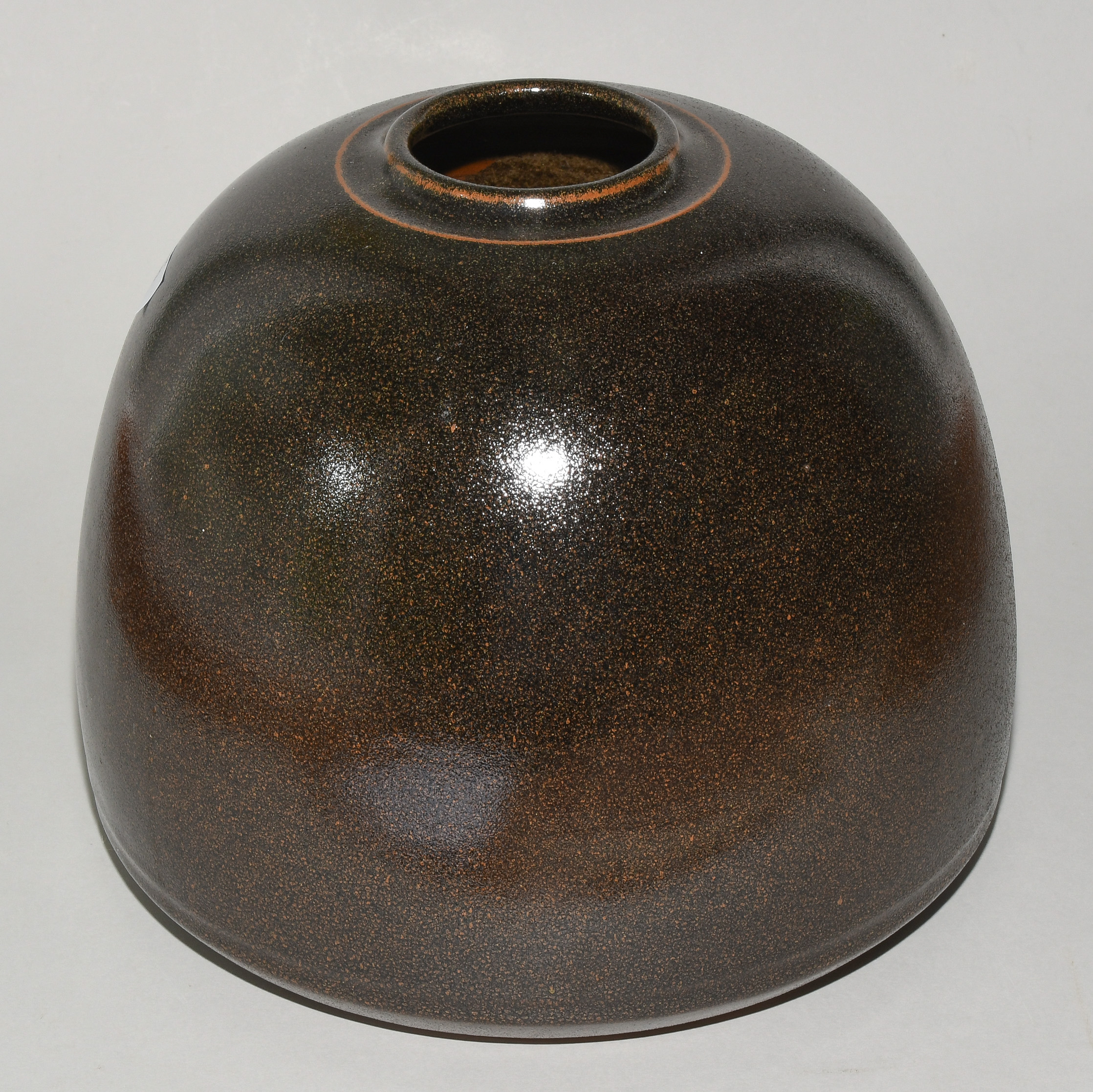 Vase. Keramik, schwarz-braun glasiert. Bezeichnet: Künstlersignatur. H 23 cm.